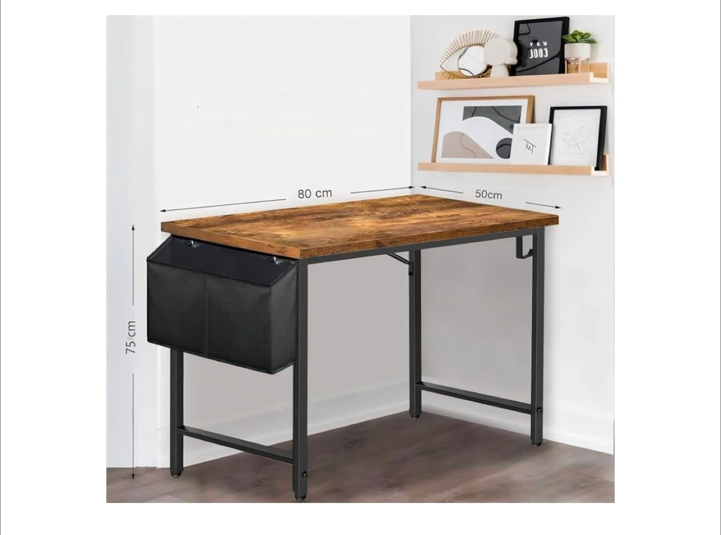 Brown Rustic Desk with Storage Pocket, 80x50 cm