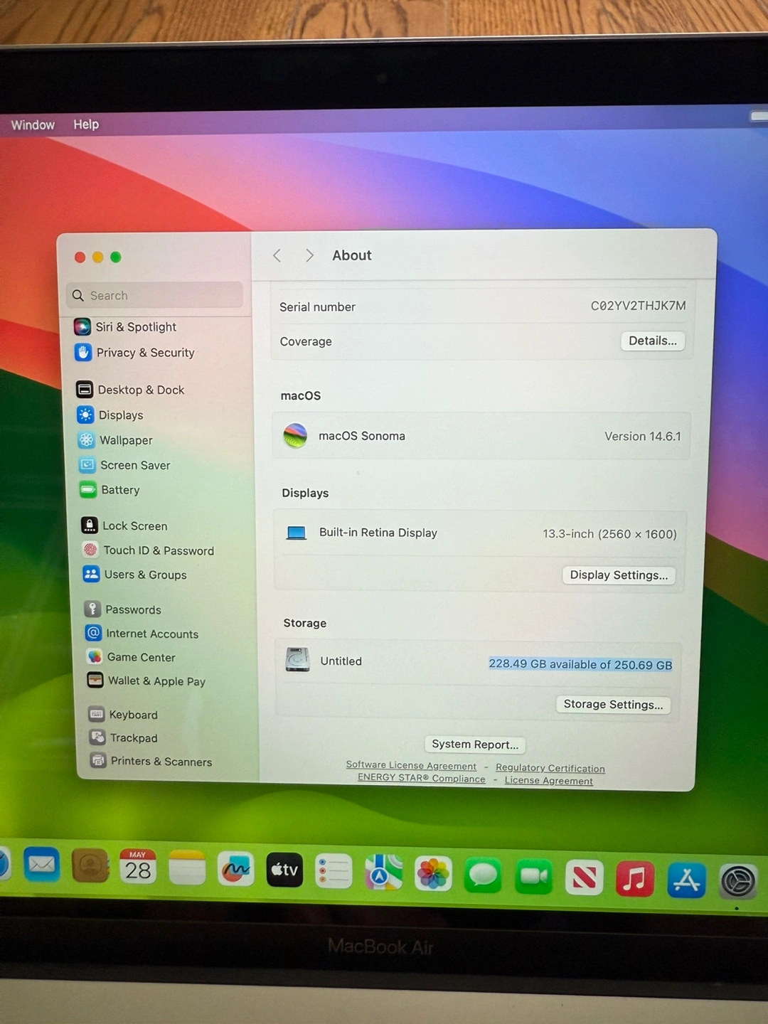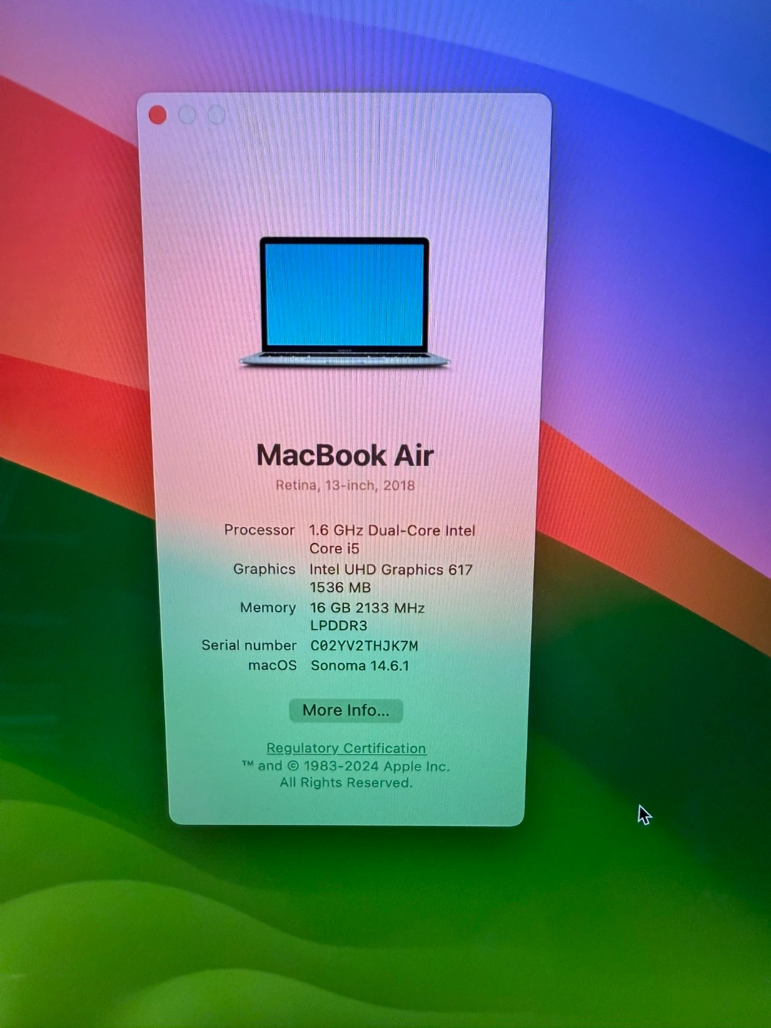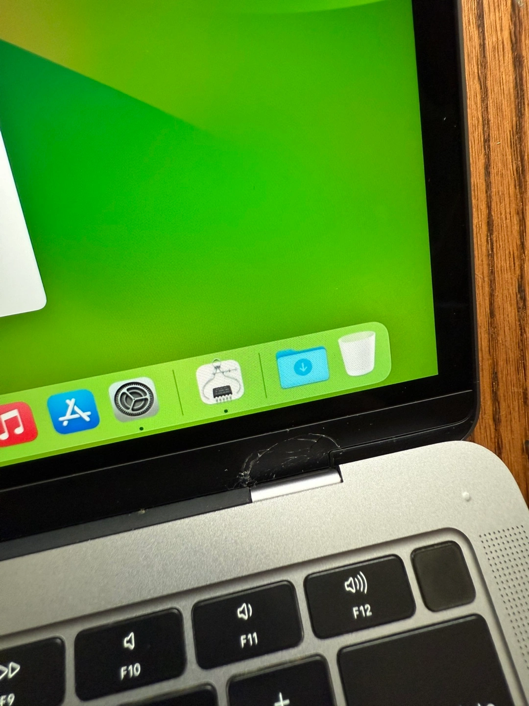 -267MacBook Air 13 2018/16GB RAM/256GB SSD/Fully Functional/USB-C charger/Big Discount, A little on right hand corner of the screen. See last image Original Price: $379, Now $279