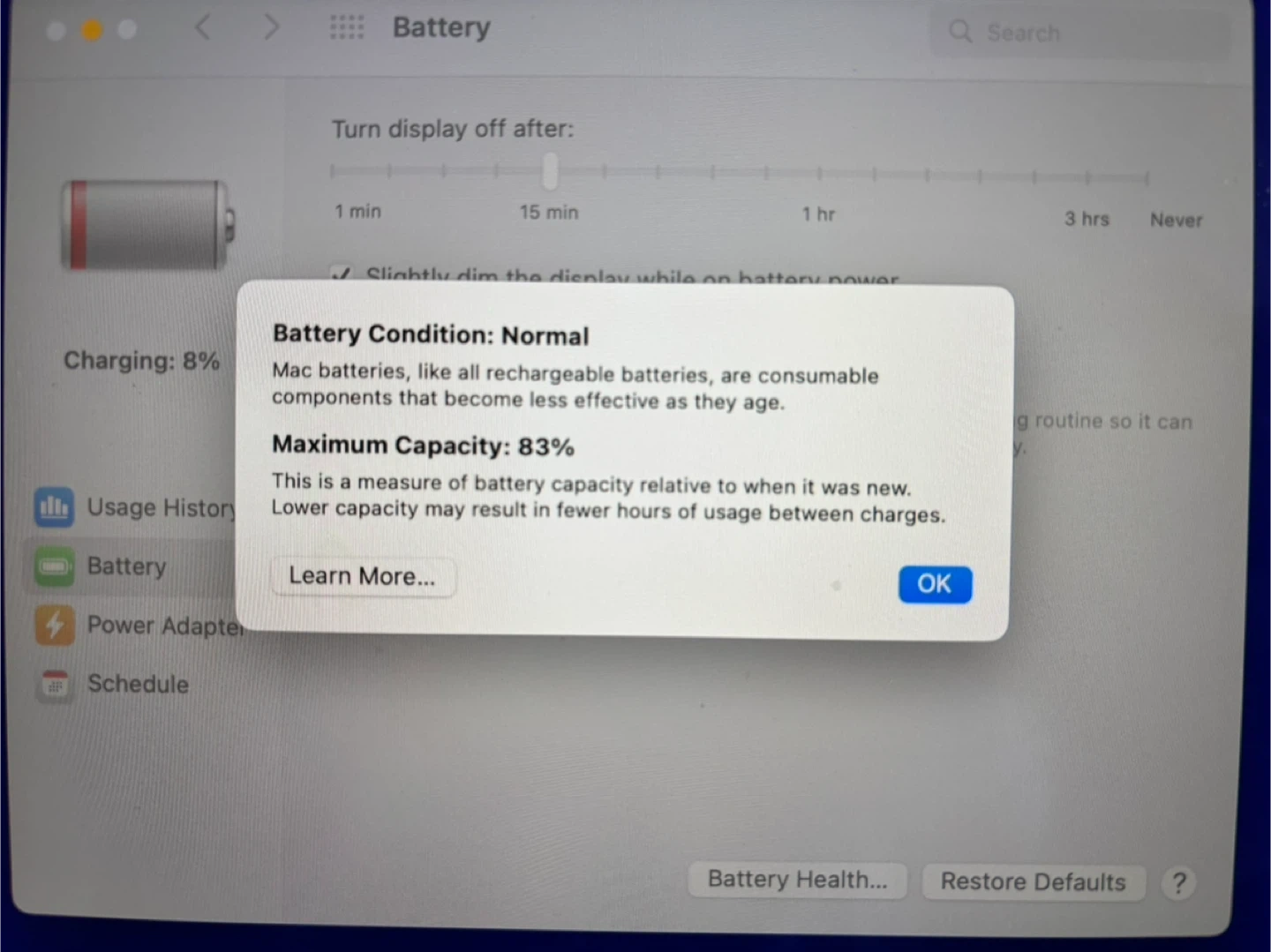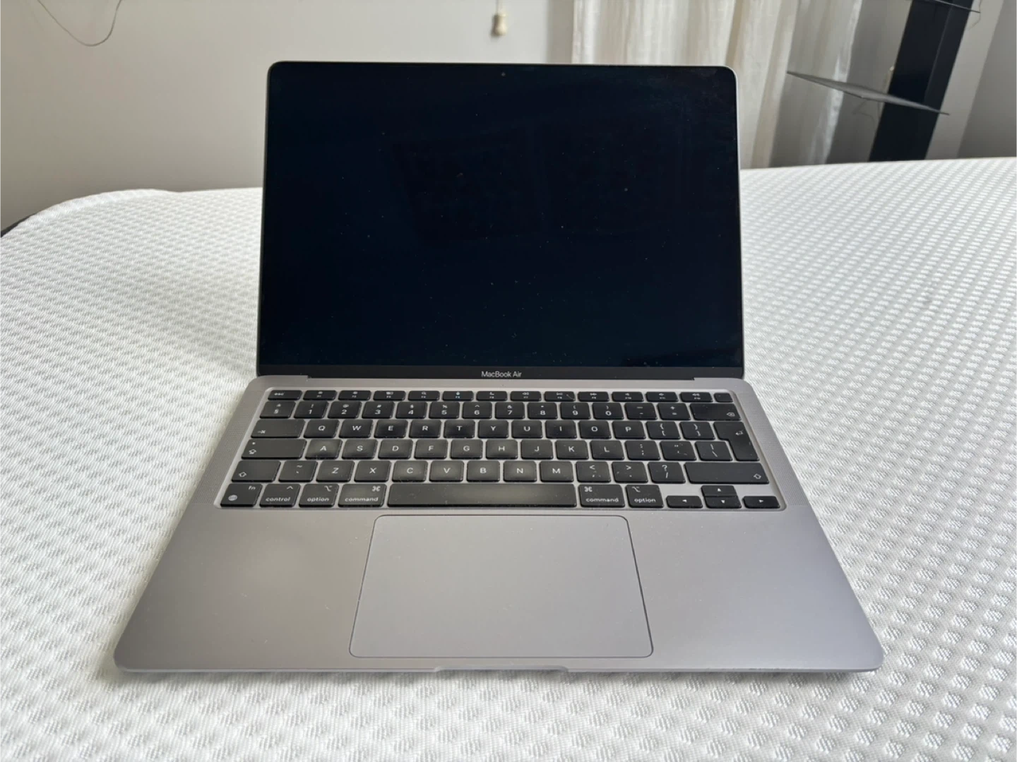 60Used 13-inch Macbook Air with built-in retina display (M1, 2020, Silver). 8GB drive / 250GB flash storage. Charger is NOT included. General wear and tear, includes a tiny area of LCD-damage on the lower left side of the screen (pictured). The screen and hardware is all fully functional, and price has been adjusted to compensate for said LCD-damage. This is such a great laptop! I wish I didn't have to part ways — the only reason I am selling it is because I need to upgrade to a higher chip for work reasons.
