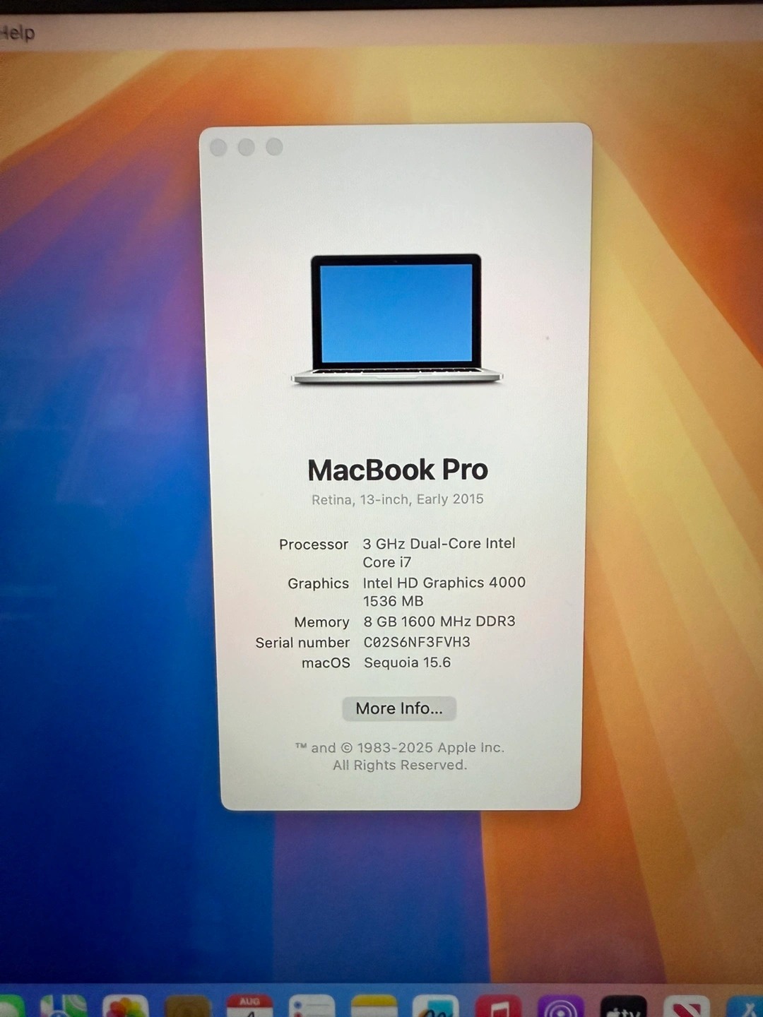 MacBook Pro 13” 2015/8GB RAM/512GB SSD/MacOS Sequoia 15.6