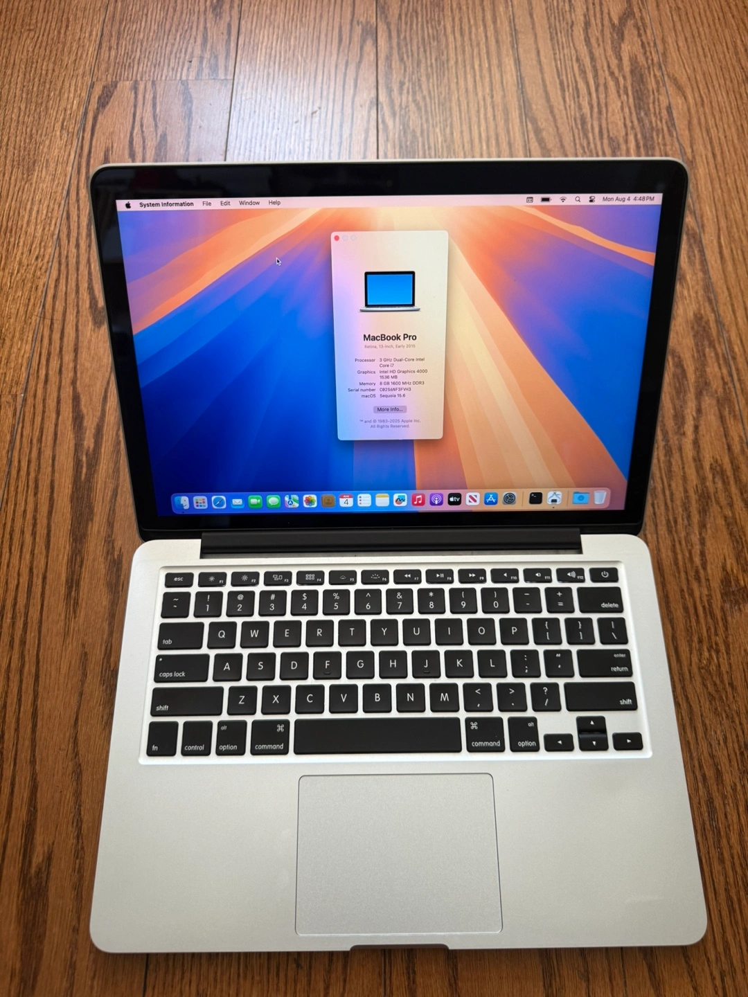 MacBook Pro 13” 2015/8GB RAM/512GB SSD/Latest MacOS Sequoia 15.6/Fully Functional/Apple Charger