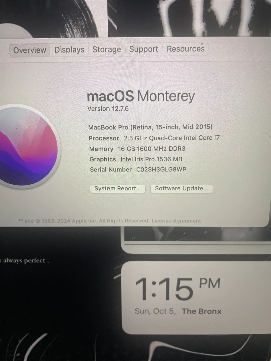 Selling a MacBook Pro (Retina, 15-inch, Mid 2015) in good condition. It has a 2.5 GHz Quad-Core Intel Core i7 processor, 16 GB 1600 MHz DDR3 memory, and Intel Iris Pro 1536 MB graphics. Feel free to ask any questions! I am able to ship as well.