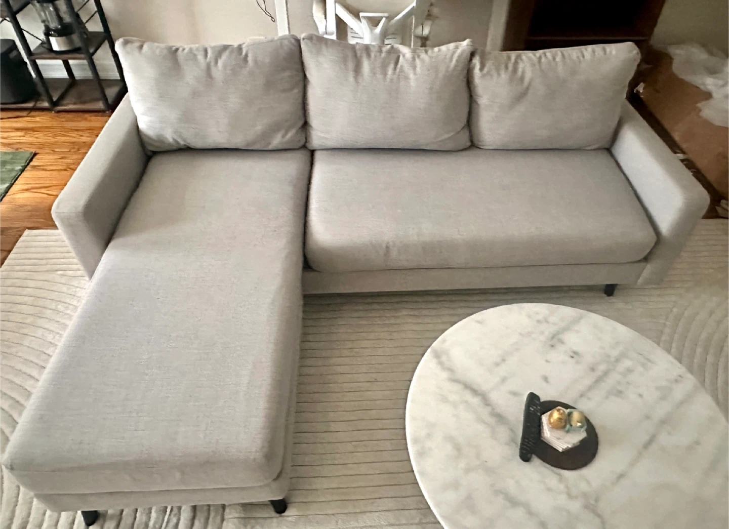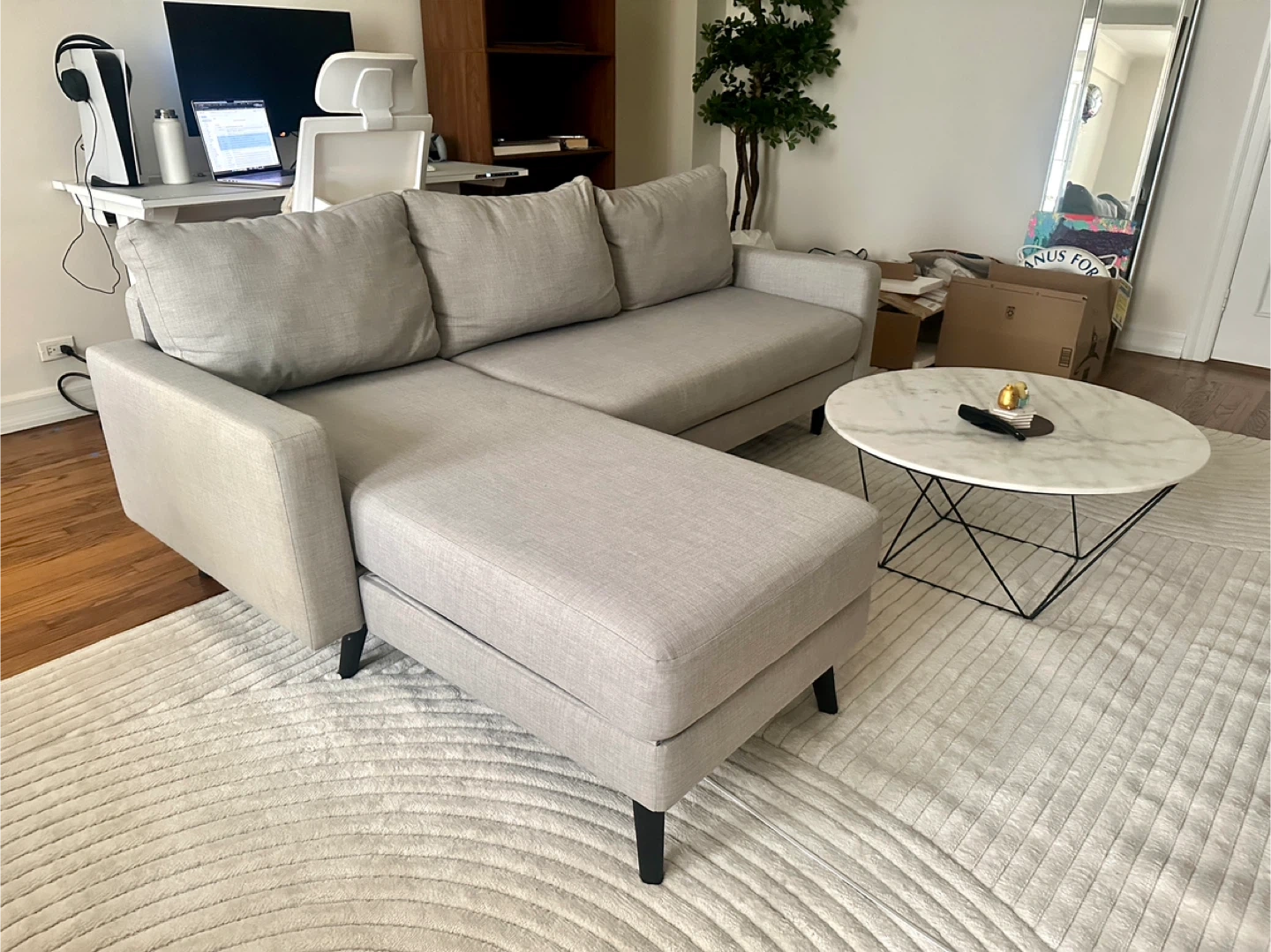 65****Offering a $50 discount If you pick up by 11/16 (Sunday)**** Brand: Inside Weather Original Price: $1200 Sell Price: $300 Dimensions: 23"H x 32"D x 74" L (63" on the sectional side) Color: Light Grey Info: Machine washable cushions. Chaise can move from left to right side to easily adapt to your space. Non-smoking house, no pets. Pickup location: Hell’s Kitchen, DM for details.
