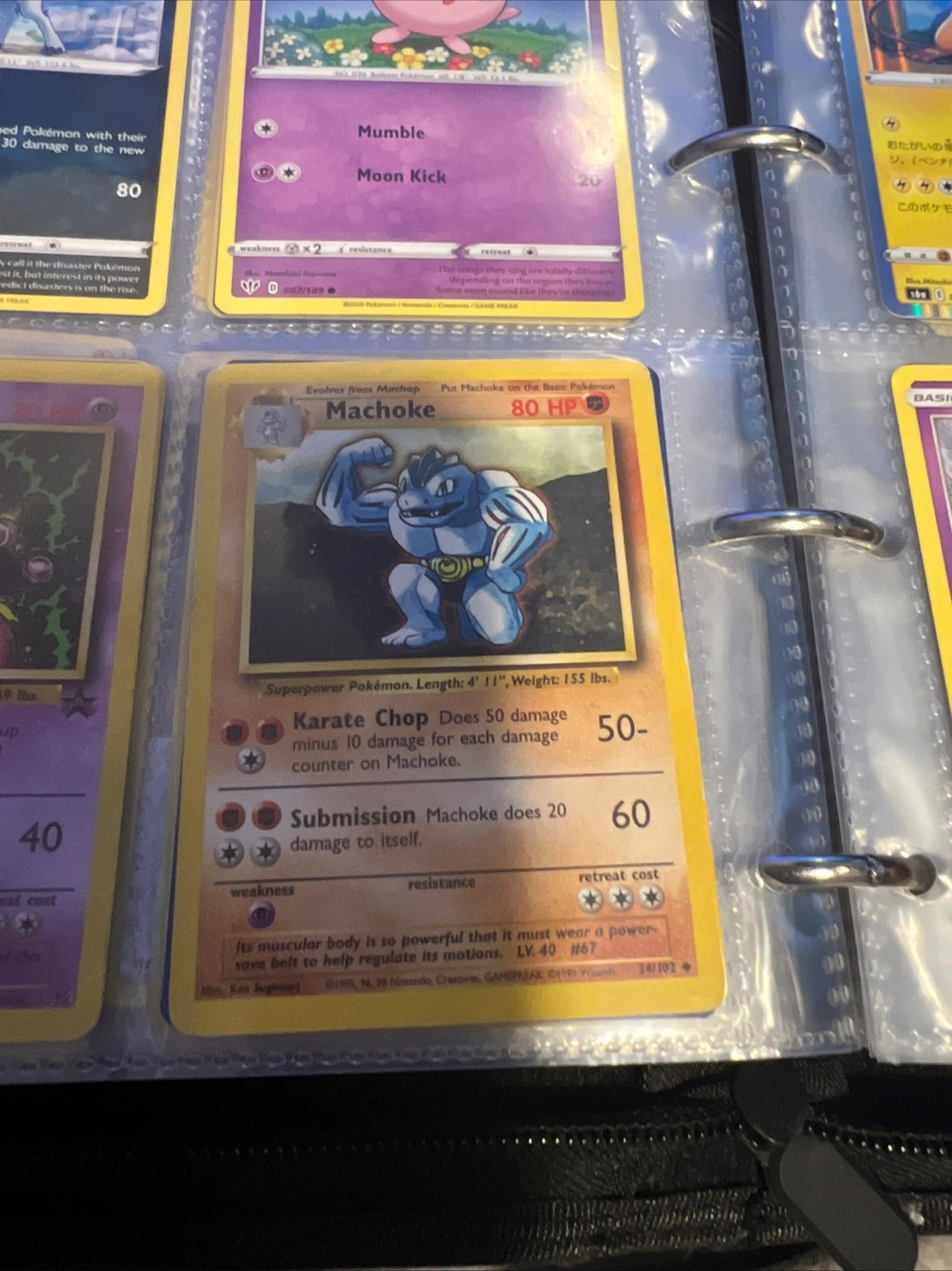 75Selling a Machoke Pokemon card. It's in good condition. The card is a Superpower Pokémon with a length of 4' 11" and a weight of 155 lbs. It evolves from Machop and has 80 HP. Its muscular body is so powerful that it must wear a power save belt to help regulate its motions. LV.40 #67