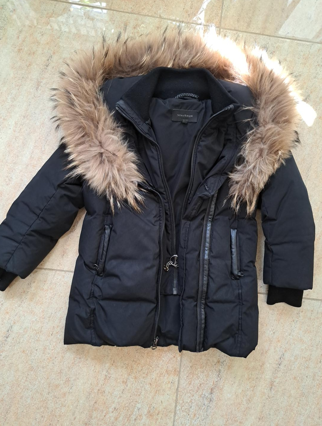 Selling a Mackage black down winter coat. It has a fur-trimmed hood and is in great condition. Perfect for staying warm during the cold weather!