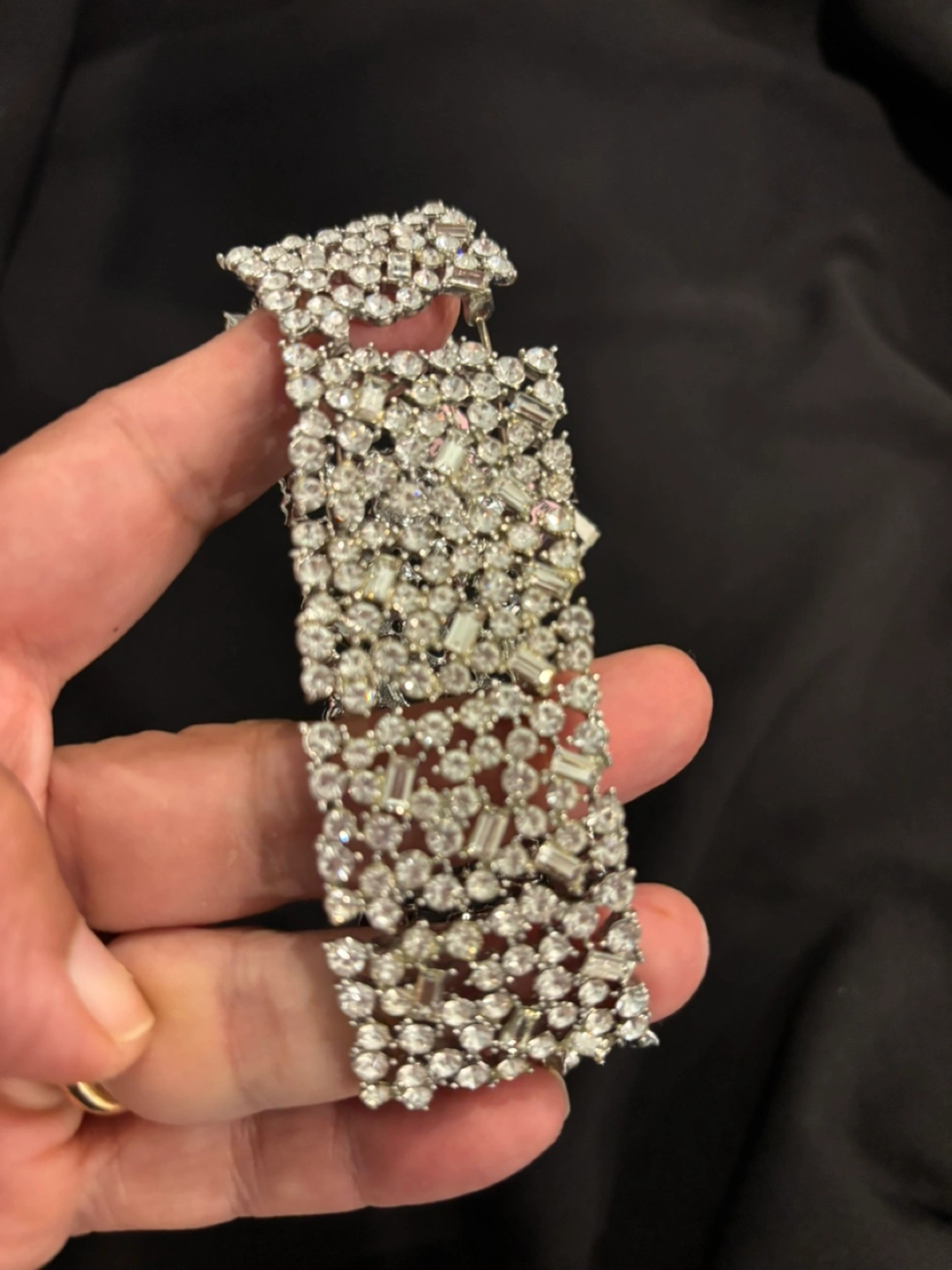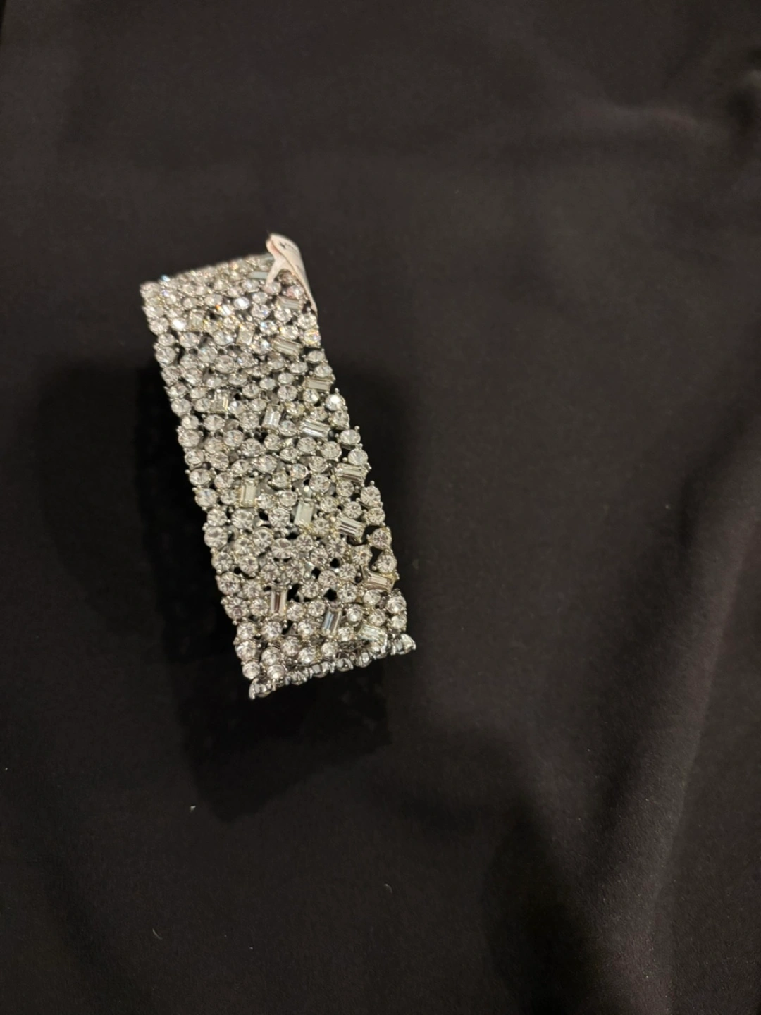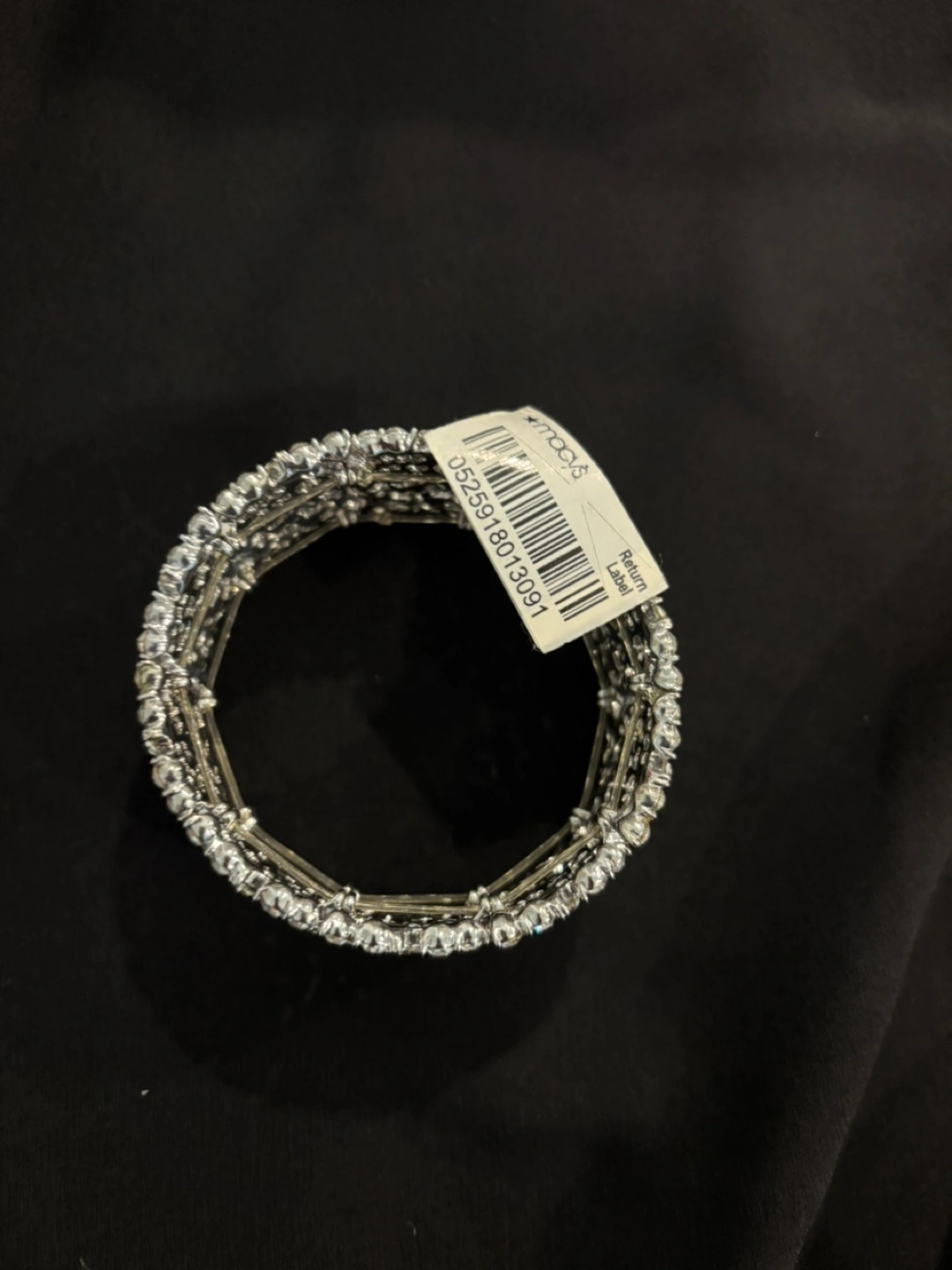Here's a beautiful silver-tone bracelet from Macy's! It's covered in sparkling rhinestones and has a stretchy, comfortable fit. Perfect for adding some bling to your outfit!