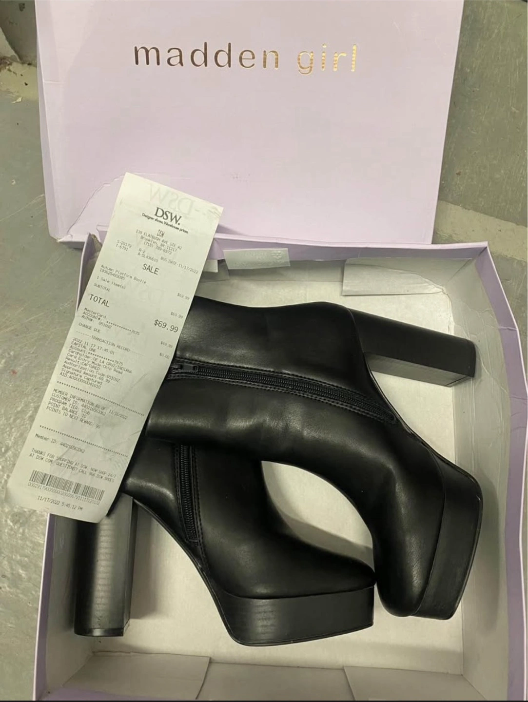 Madden Girl black platform booties in great condition! They come with the original box. Originally bought for $69.99 - WORN ONCE.