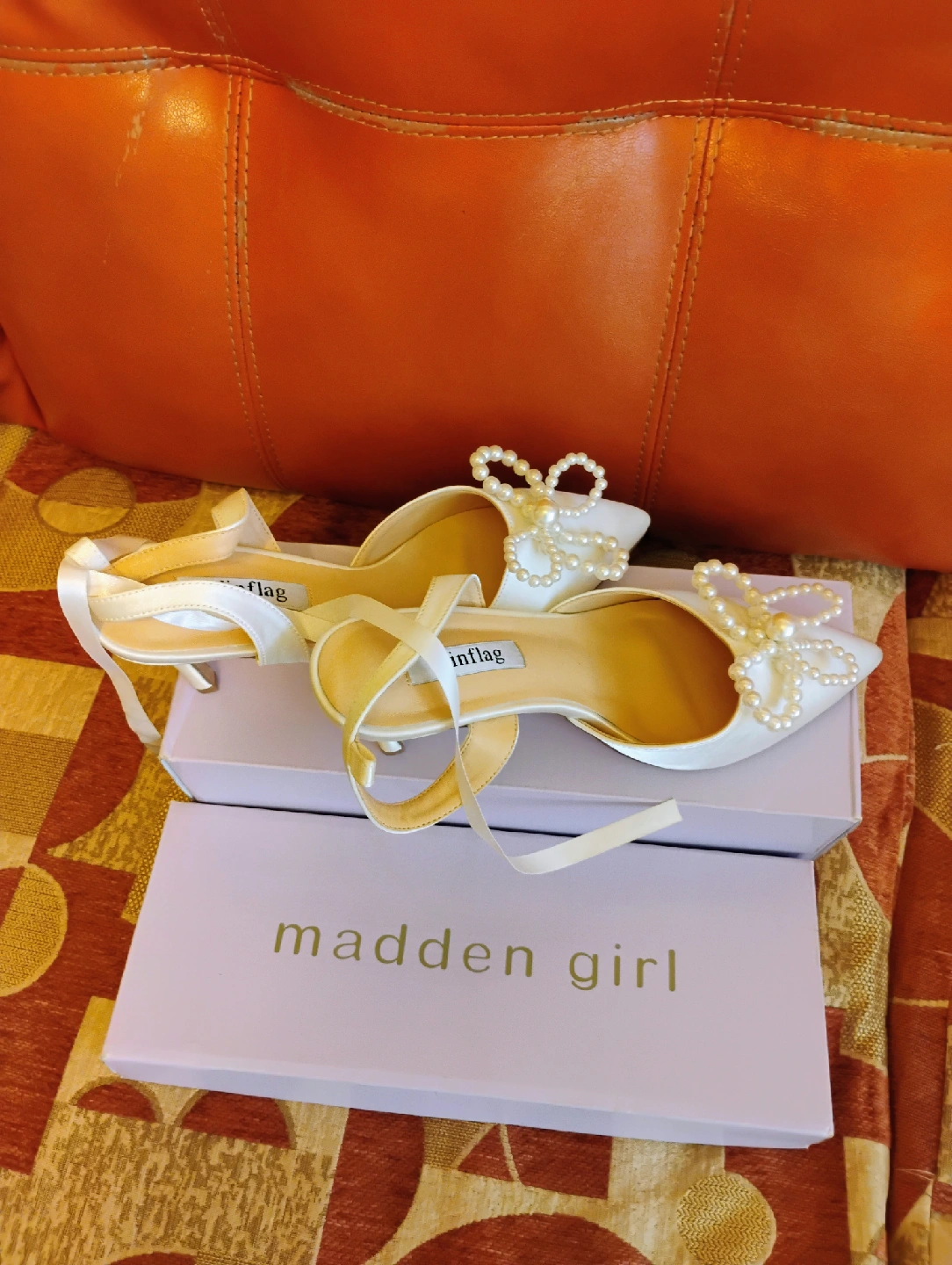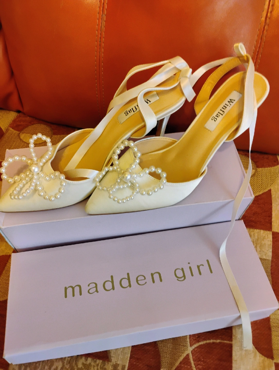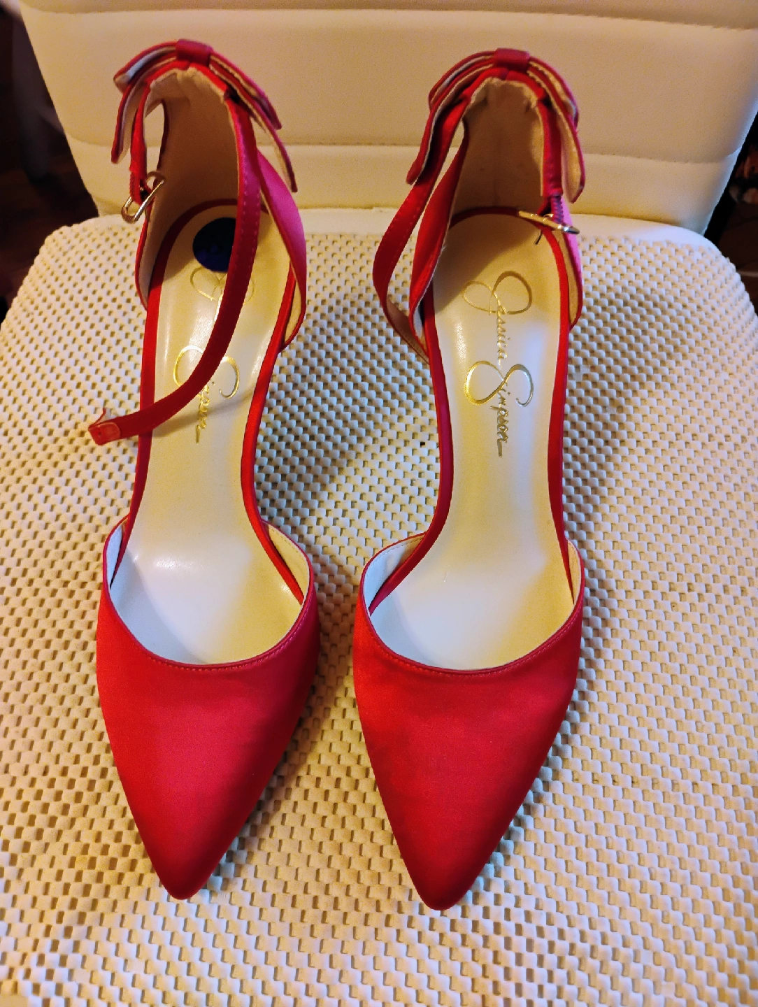 30I have two pairs of heels for sale! One pair is Madden Girl, white with pearl accents and ribbon ties. The other pair is Jessica Simpson, red with a bow in the back. Both are in great condition!