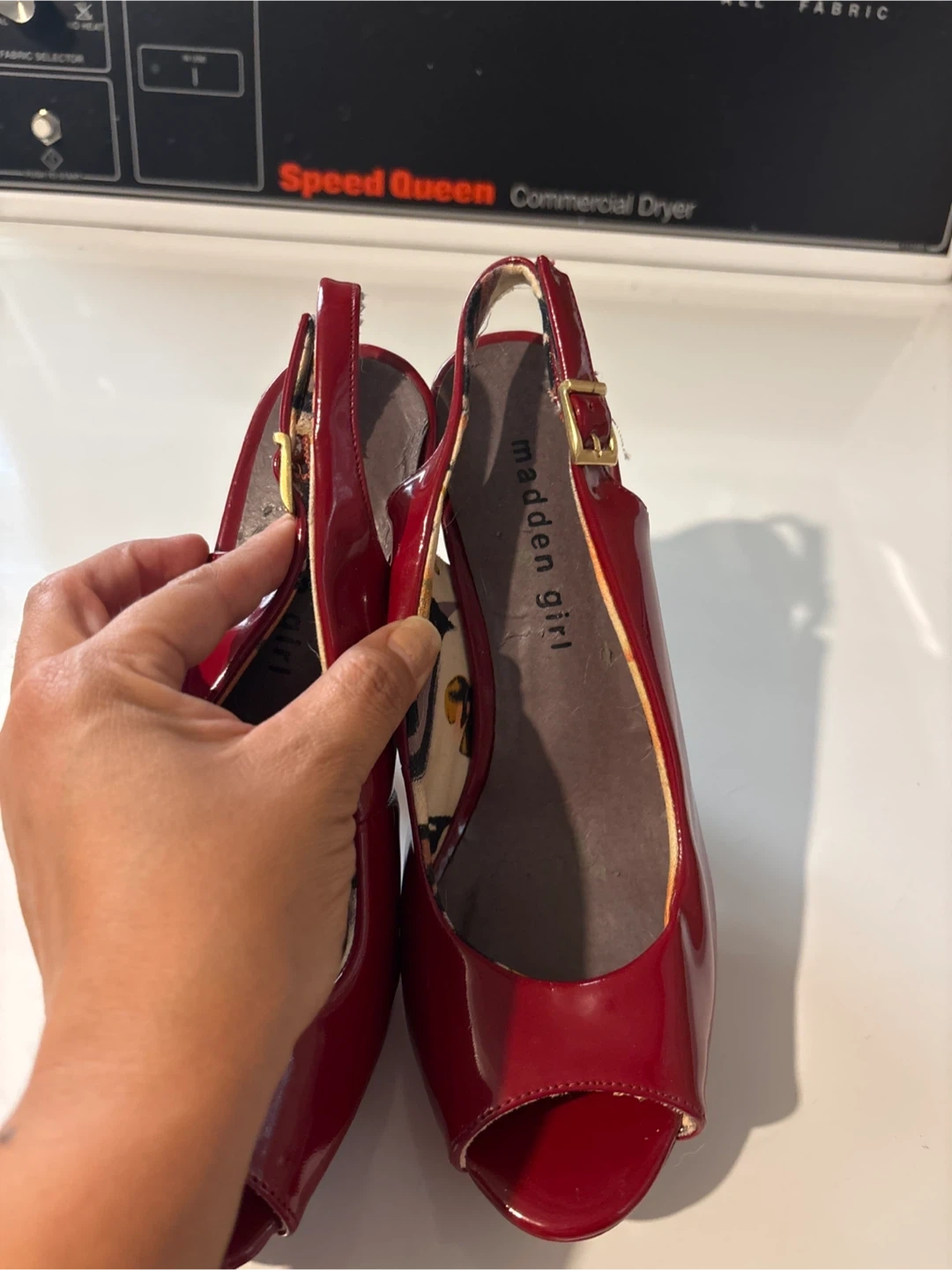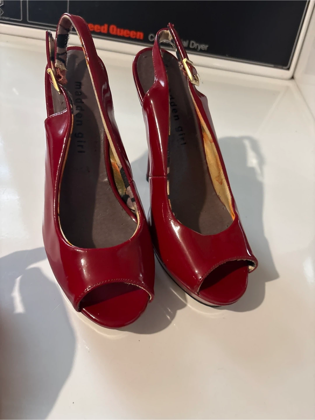 Selling a pair of Madden Girl red heels. They have some wear on the inside of the strap, but otherwise are in good condition! 6 Good condition No scratches Worn once