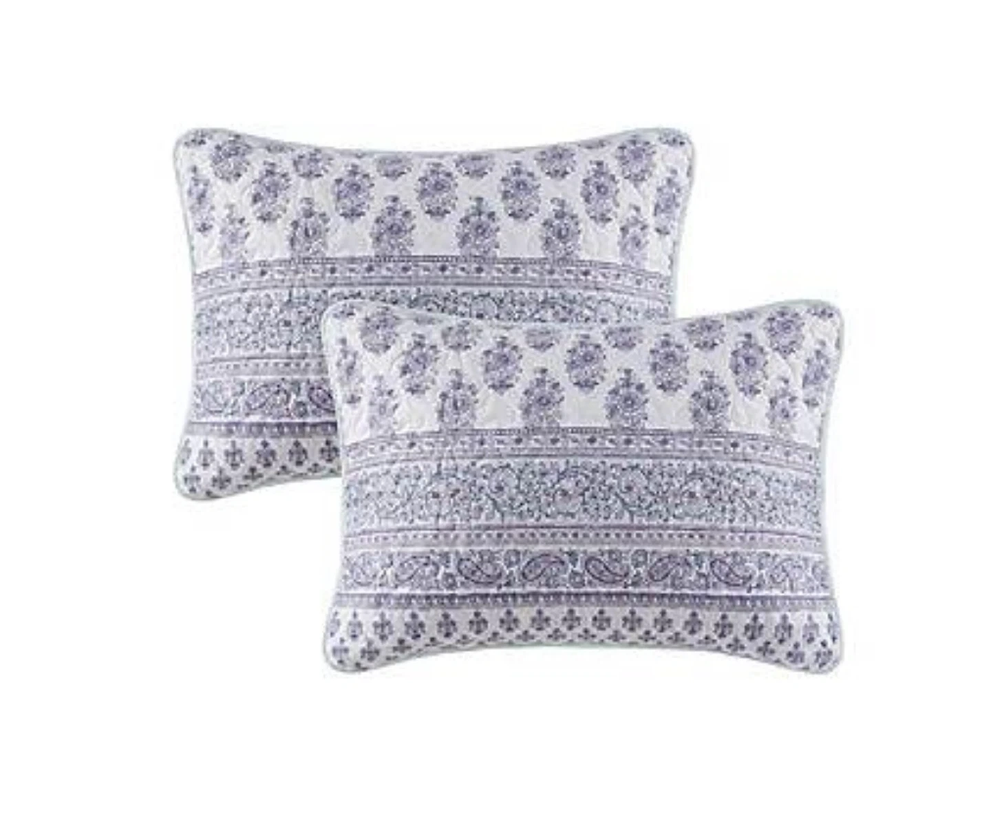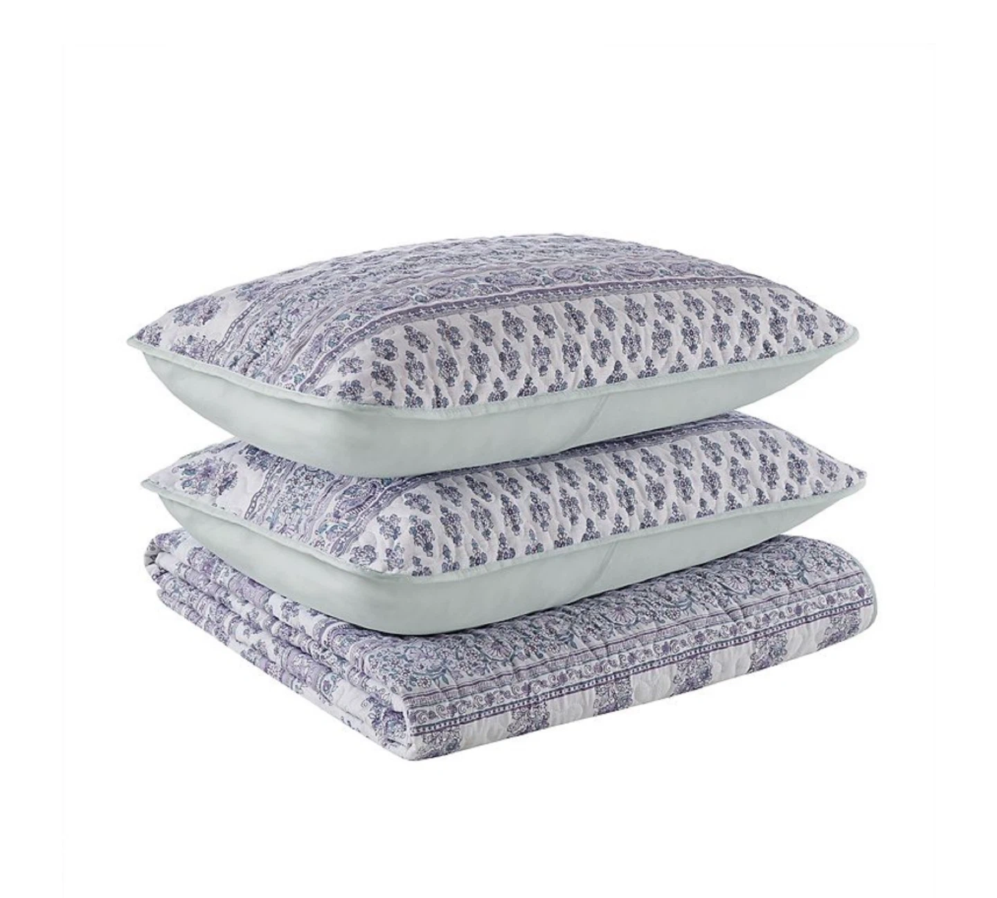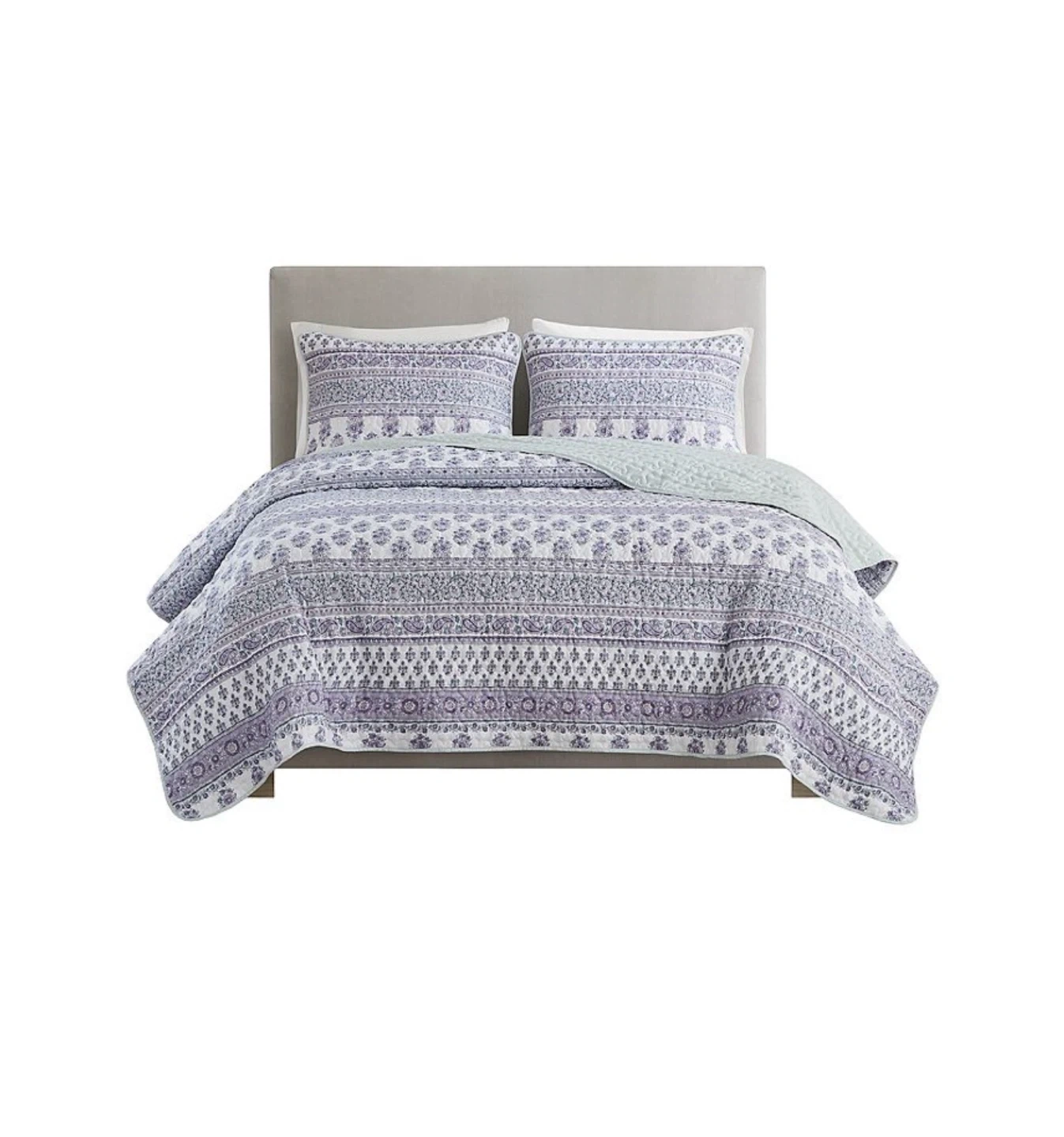 This is a Madison park Home essentials quilt set. It features a beautiful floral pattern in shades of white and purple. Perfect for adding a touch of elegance to your bedroom!