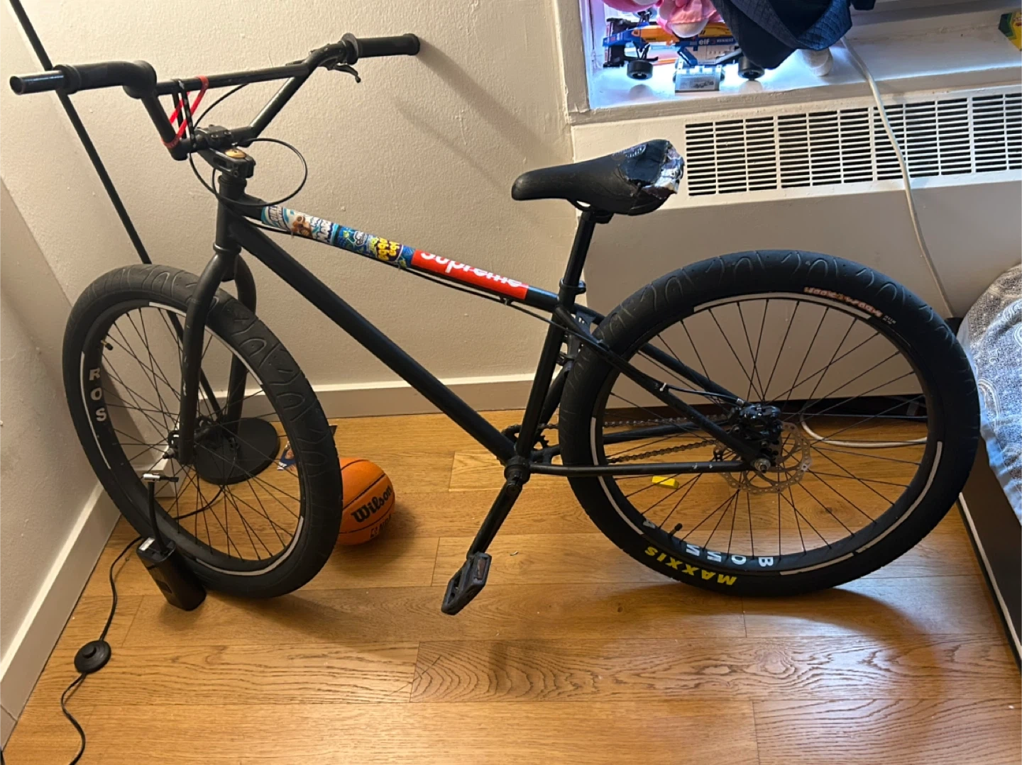 0Is a 27 1/2 inch with 26 wheels bike in good condition the seat is a little messed up though .the brakes feel great