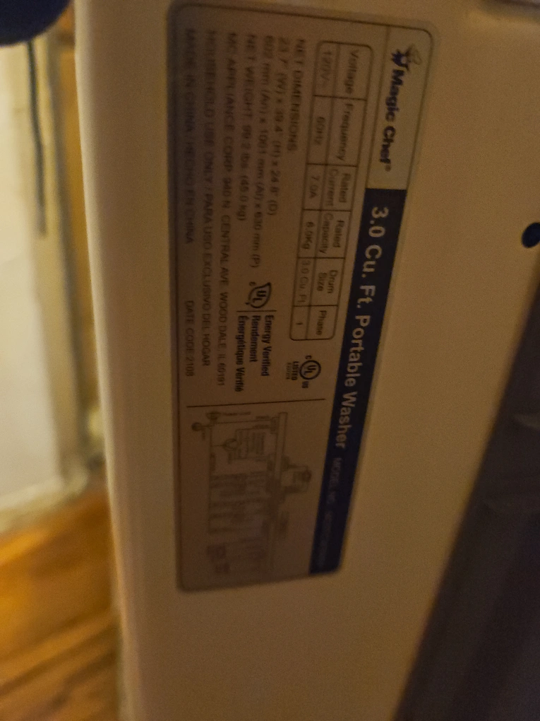 Selling a Magic Chef 3.0 Cu. Ft. Portable Washer. It's in good condition and ready to use! It has a compact design, making it great for smaller spaces.