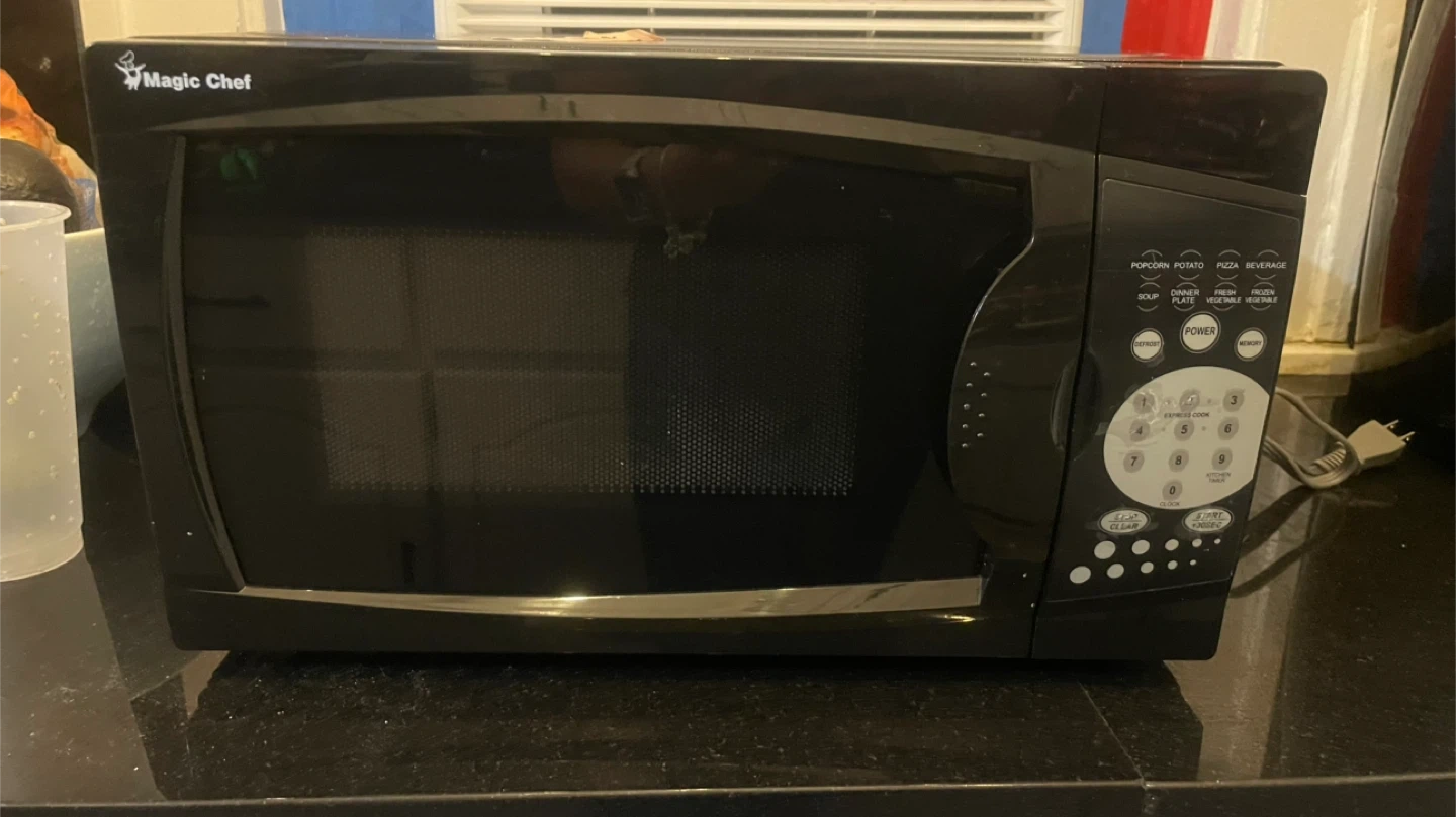 Selling a black Magic Chef microwave. It's in good condition and ready to use! Perfect for quick meals and heating up leftovers. It has settings for popcorn, potato, pizza, and beverages