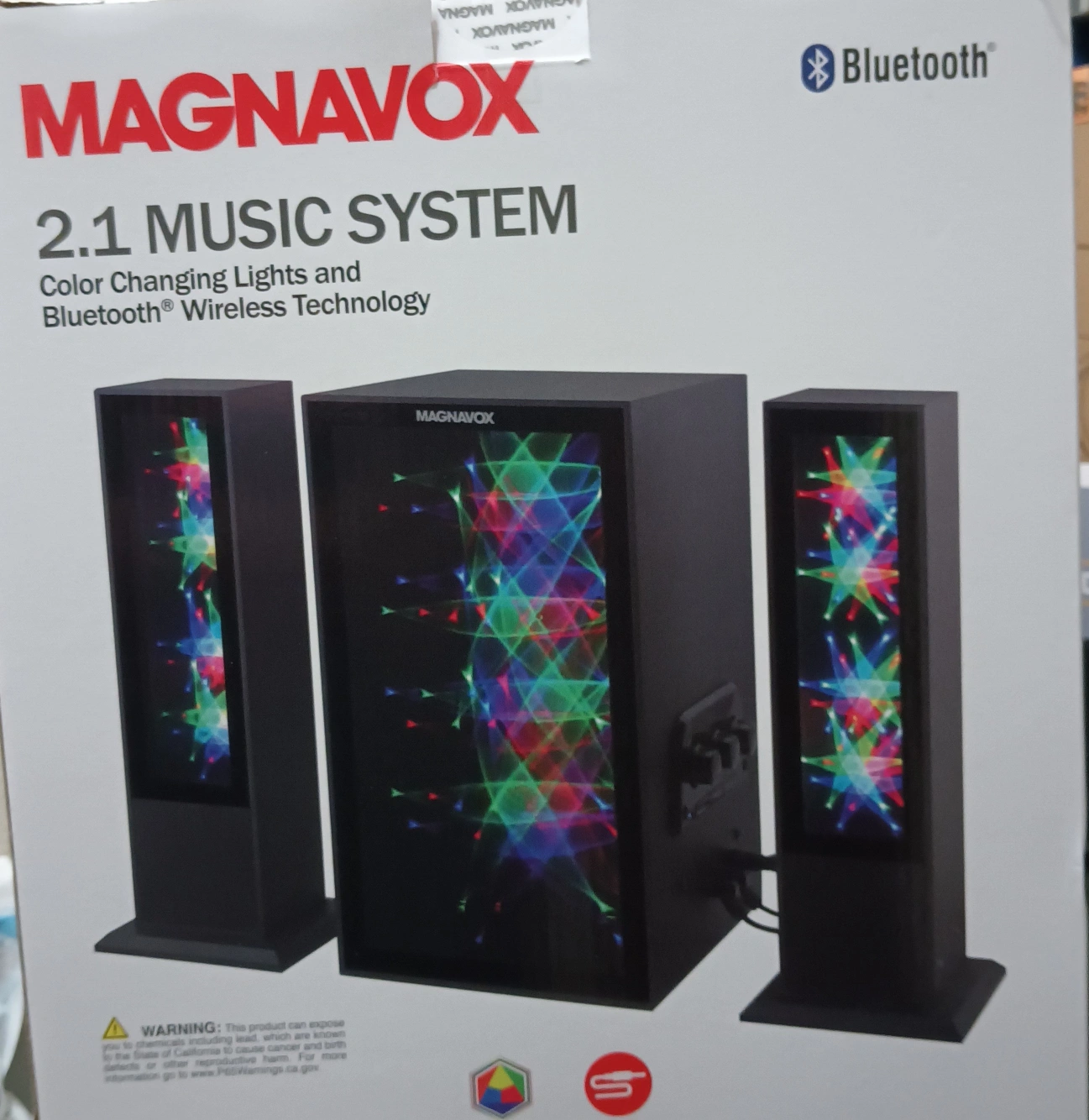 Selling a Magnavox 2.1 Music System with color changing lights and Bluetooth wireless technology! It's in great condition and comes in the original box