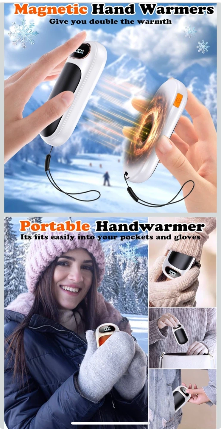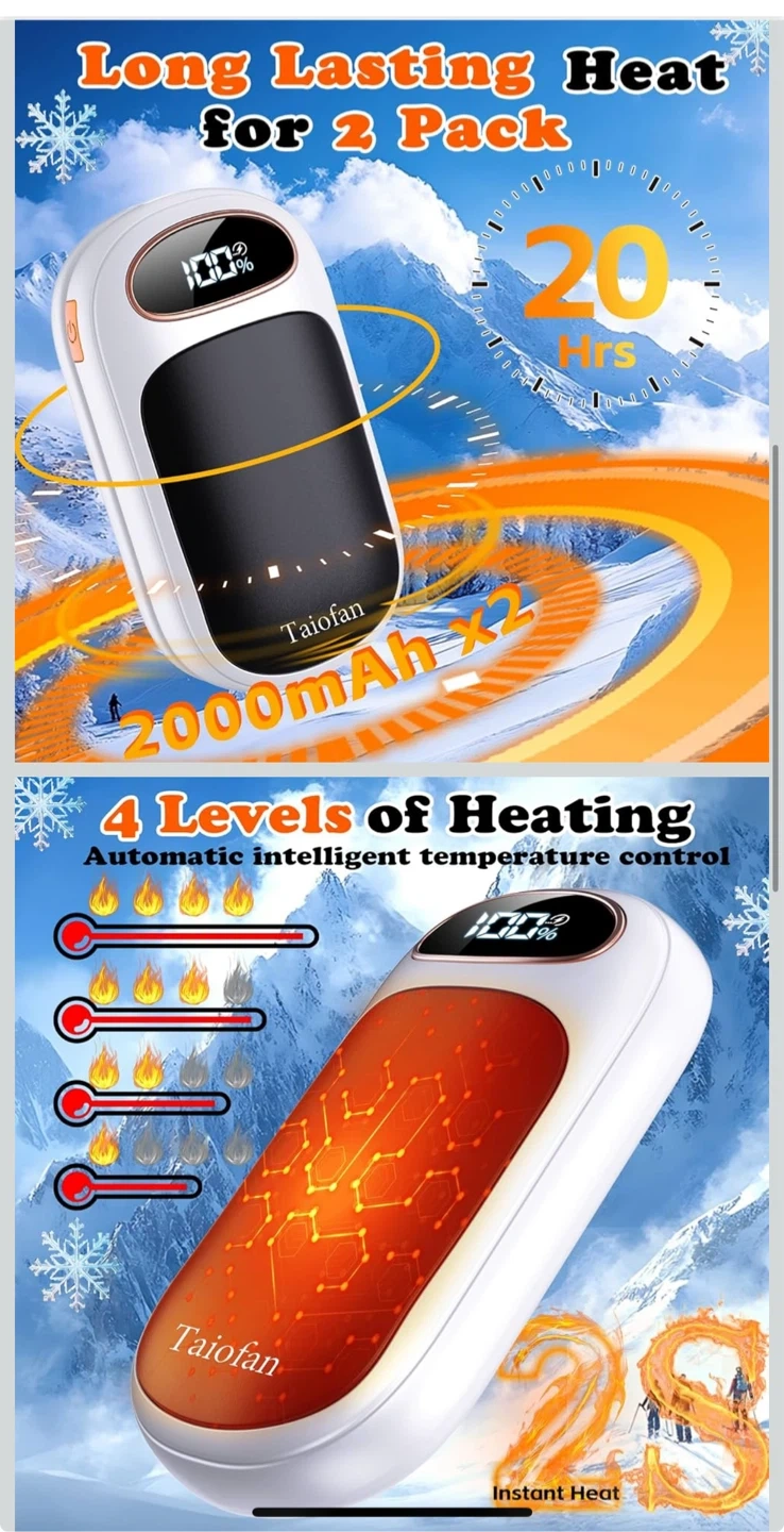 Rechargeable Hand Warmer 2 Pack, LED Display & 4 Levels, Ultrathin Electric Hand Warmers Portable USB Pocket Heater Fits Gloves for Hunting Essentials, Camping, Raynauds, Gifts for Men Women