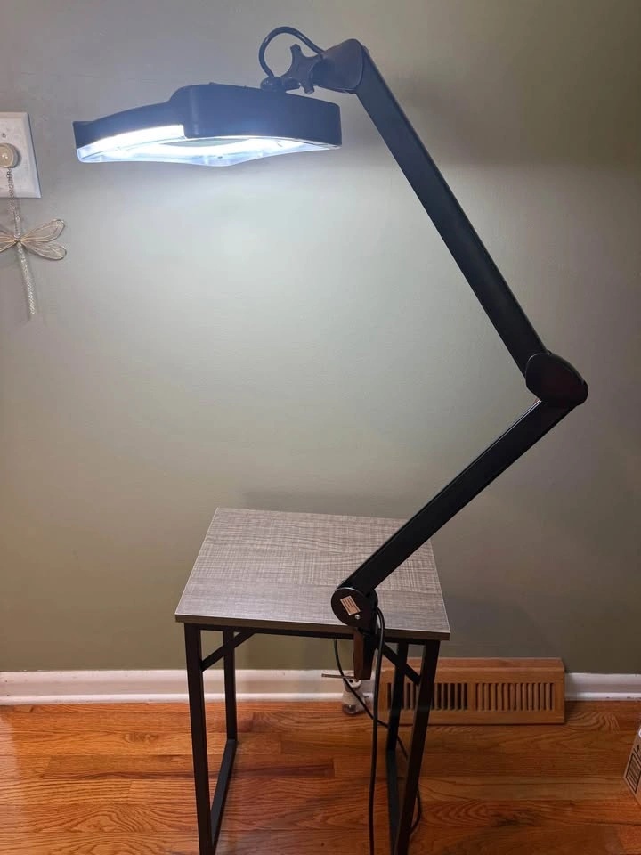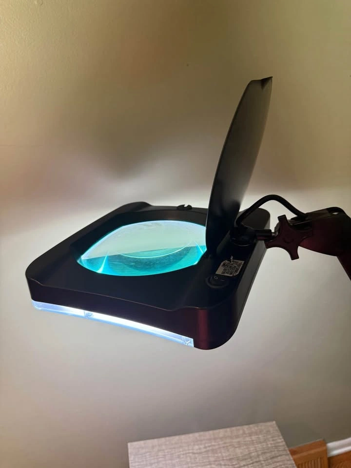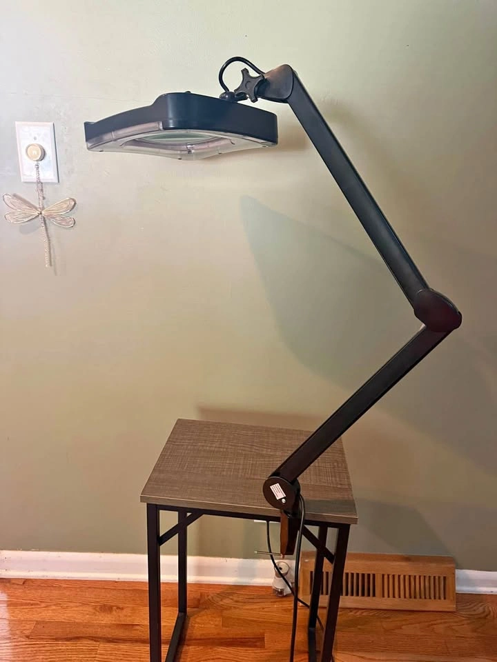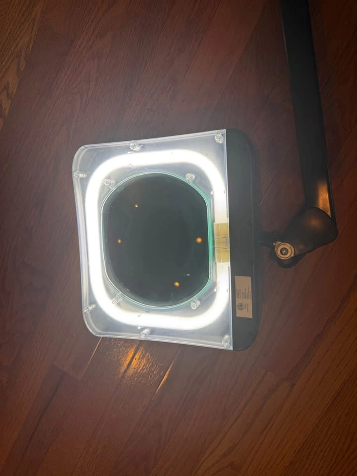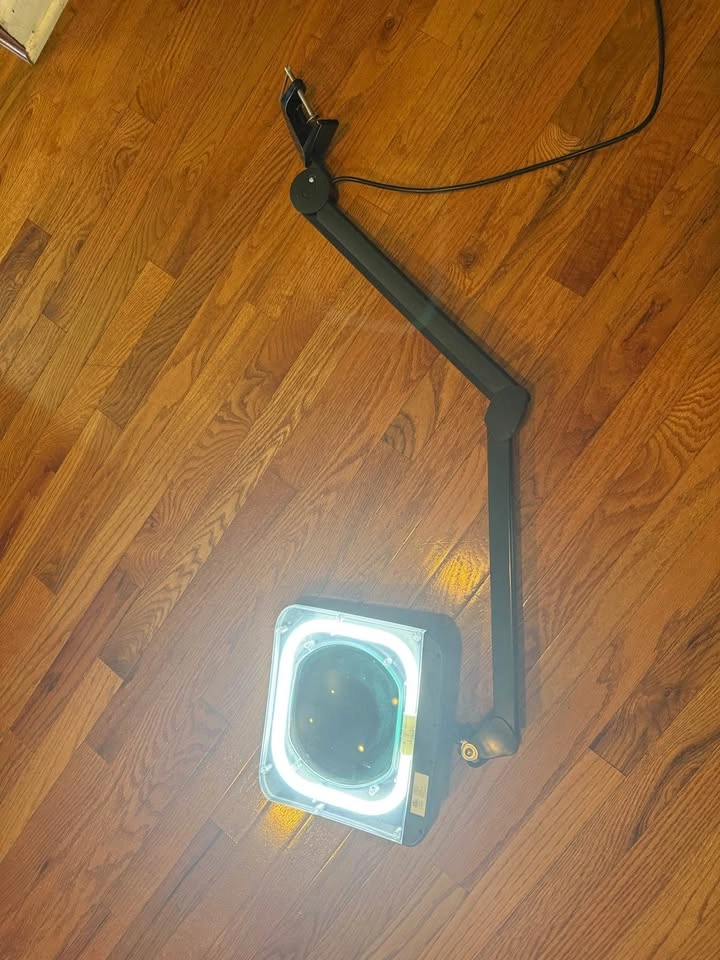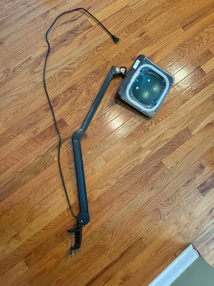 Magnifying Lamp Clip on Adjustable arm Adjustable lamp/magnifier head Adjustable arm is 34” Magnifying Lamp head is 10.5” x 10” Excellent condition, like new Perfect for reading, crafts, hobbies, etc Lake Villa near 132 & 59