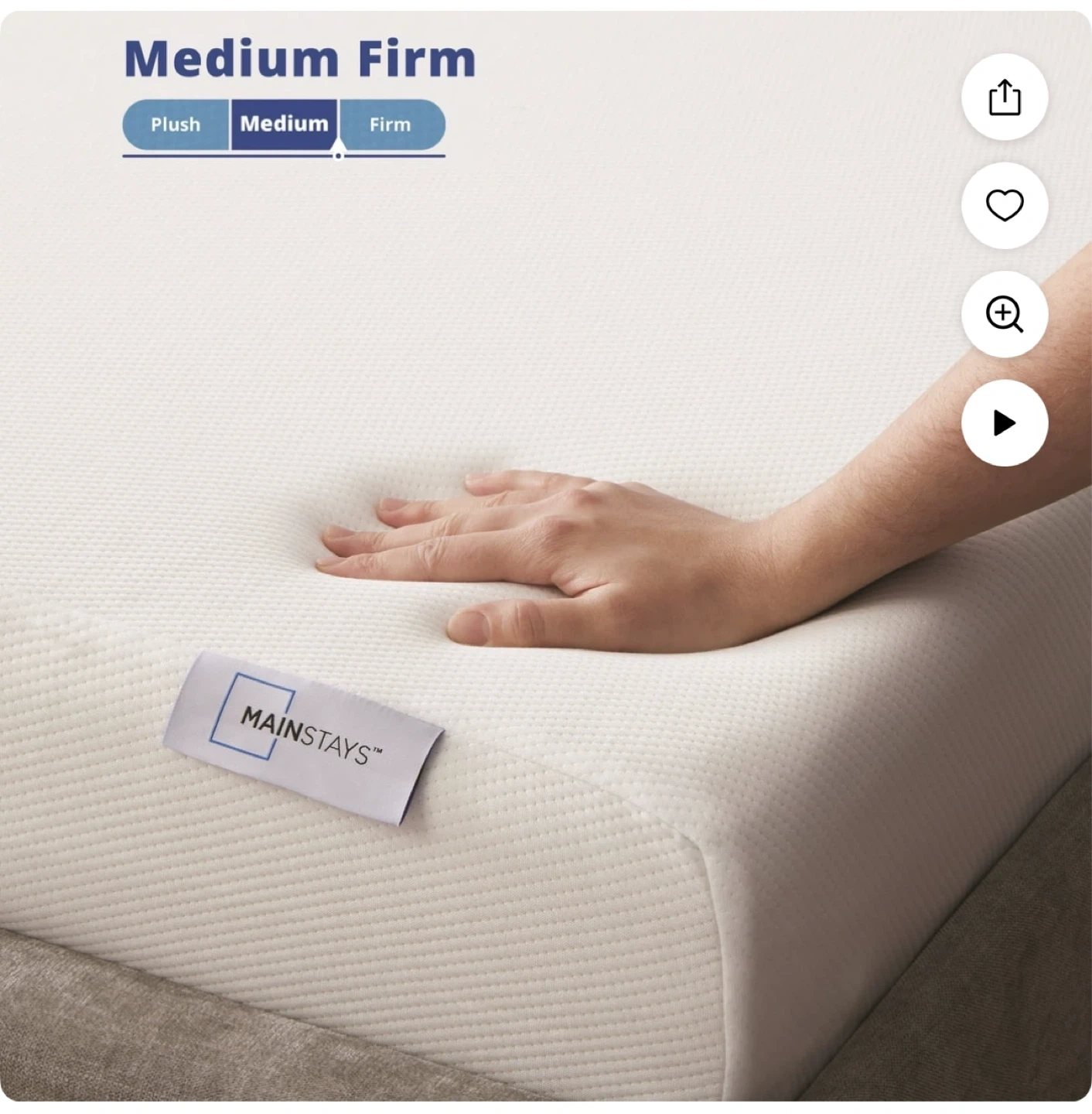 - DimensionsMainstays 10" Medium Firm Memory Foam Mattress,
