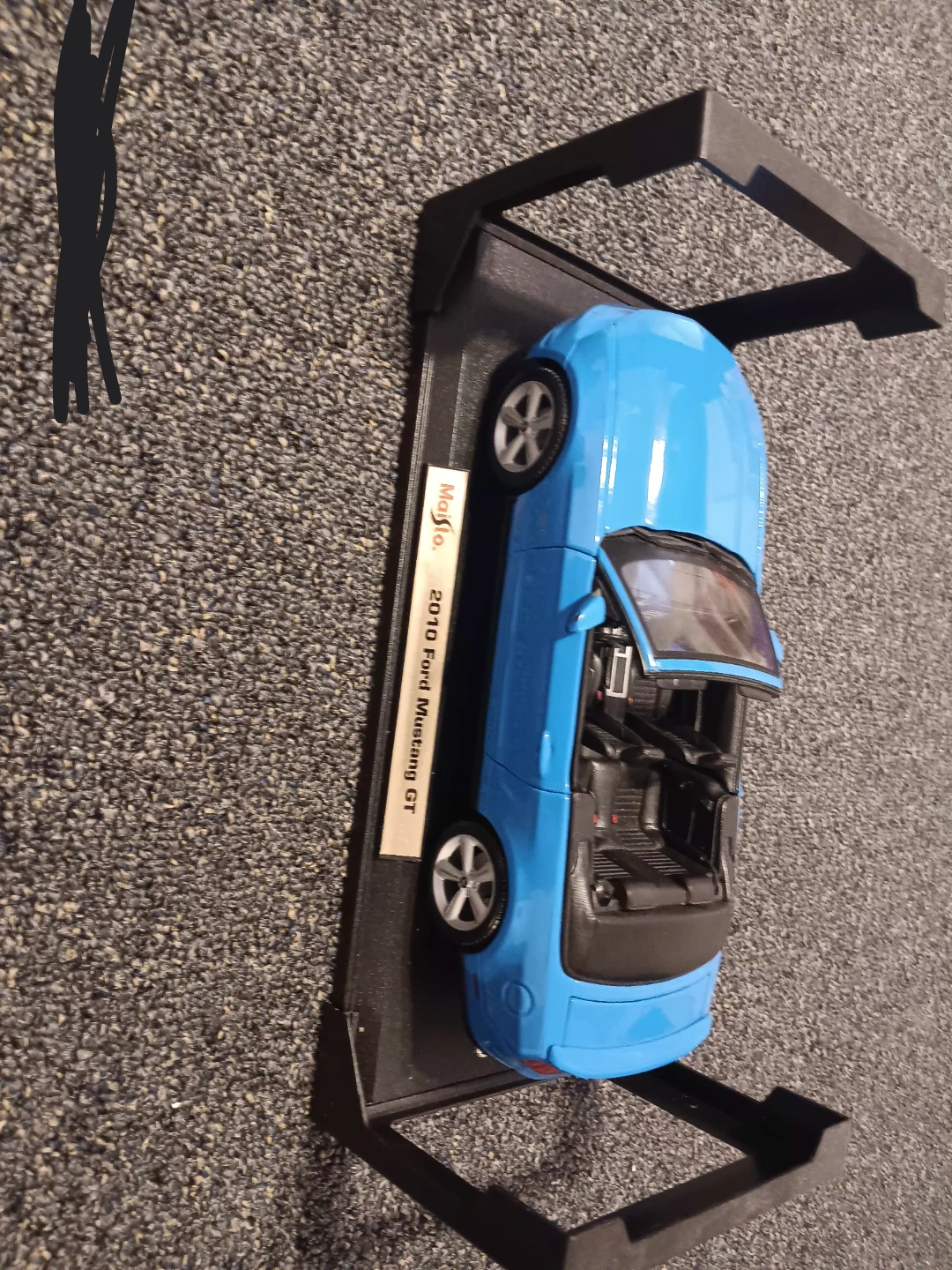 5Selling a Maisto 2010 Ford Mustang GT diecast model car. It's a cool blue color and comes with its display case