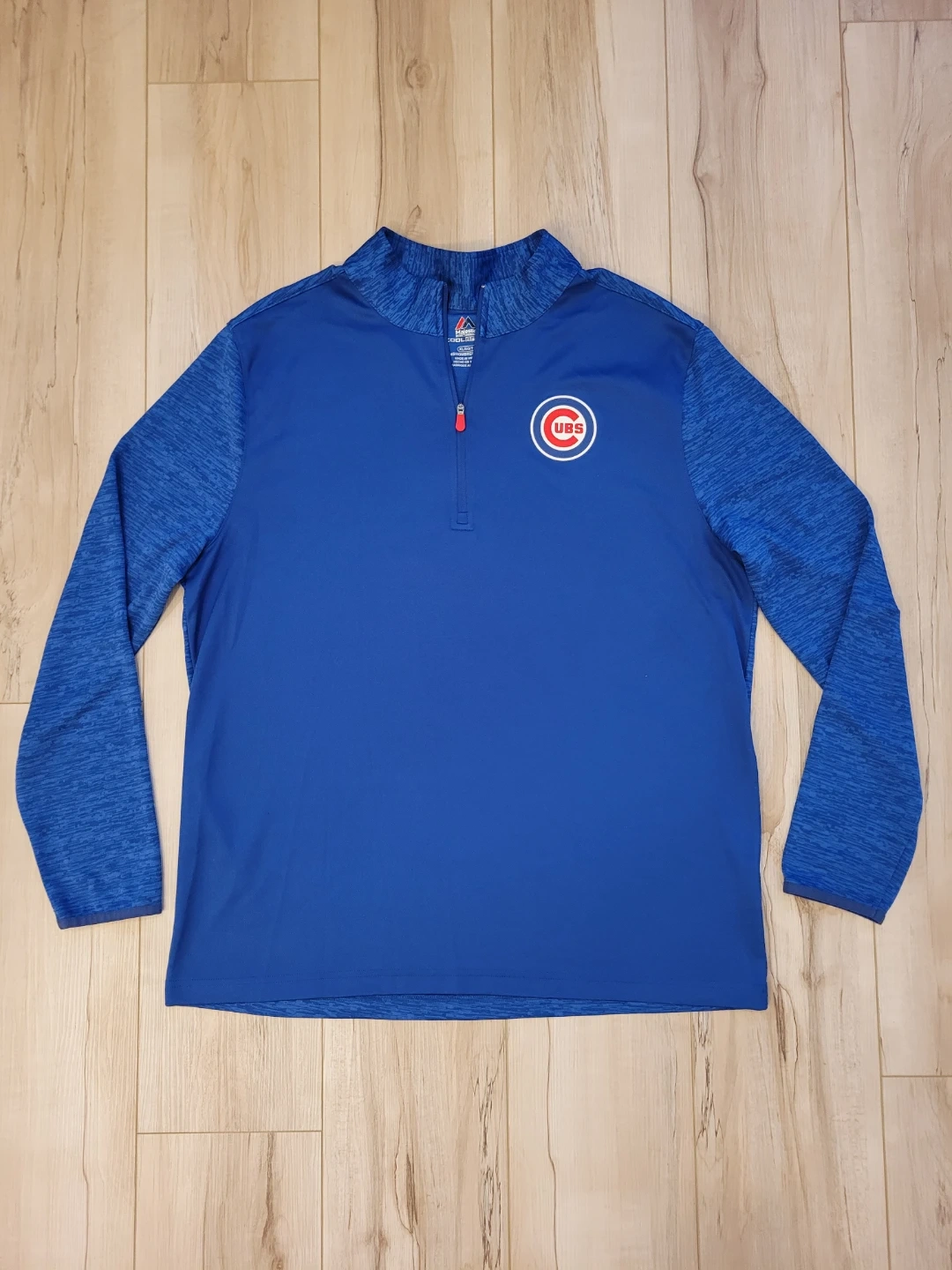 85Selling a Majestic Chicago Cubs Cool Base long sleeve shirt pullover in size mens XL. It's a stylish and comfortable piece for any Cubs fan! The pullover is in great condition and ready for a new home. Polyester. Approximately 23" from underarm to underarm and 29" from shoulder to bottom of shirt. Feel free to check out my other unique items listed.