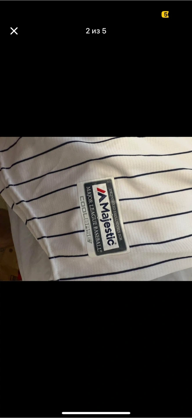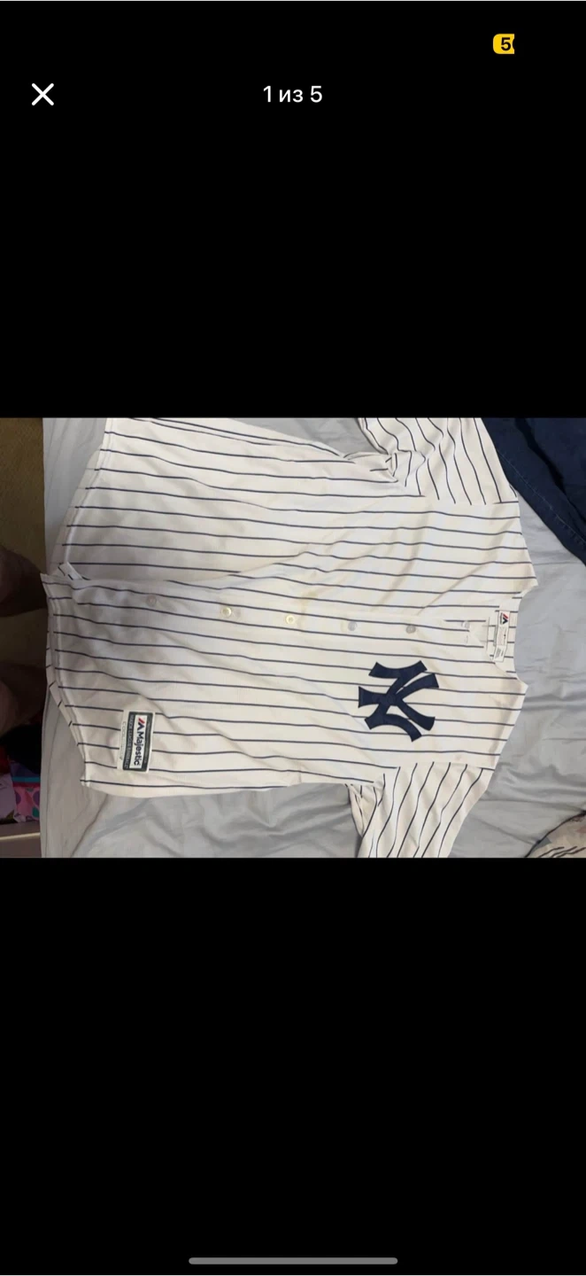Selling a Majestic New York Yankees baseball jersey! It has the classic pinstripe design and the iconic Yankees logo. Perfect for any baseball fan!