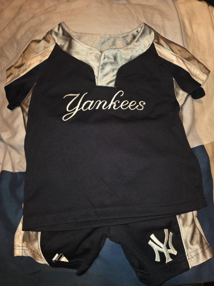Cute Majestic Yankees baby outfit! The size is 24 months. Perfect for your little Yankees fan
