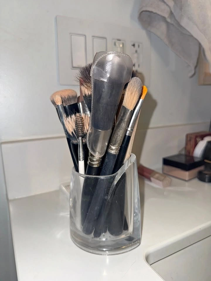 Acrylic Makeup brush holder. You can also use it on your desk to hold your pens, pencils, etc.