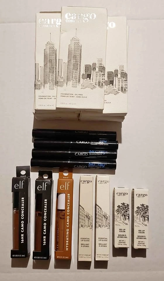 MAKEUP Mixed Lot, Cargo and e.l.f. Brands, Dark Skin Tones. Bundle includes: 7 - Cargo Liquid Oil-Free Foundation F80 4 - Cargo Concealer Pens 3 - e.l.f. Concealer 2 - Cargo Lip Gloss 2 - Cargo Gel Lip Color Everything new in box, box might be damaged in transit, check photo for colors. $20 or best offer, bundle with my other listings for discounts. Cash only pickup in Queens or Hicksville NY.