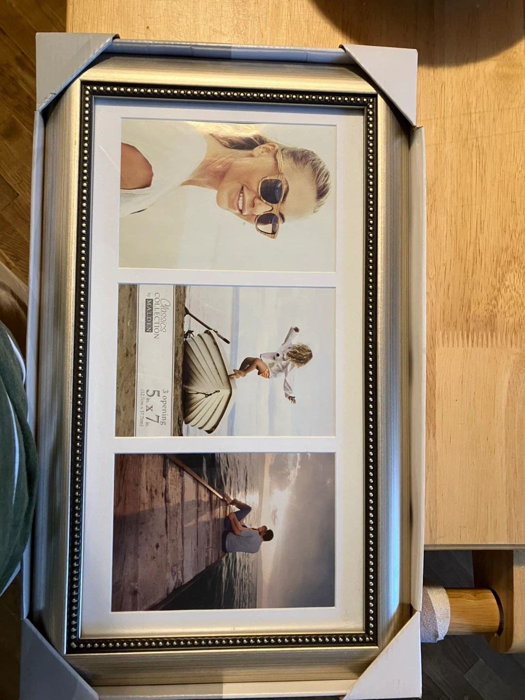 I'm selling a Malden International Designs collage picture frame! It holds three 5x7 photos. The frame has a beaded silver finish and is in great condition