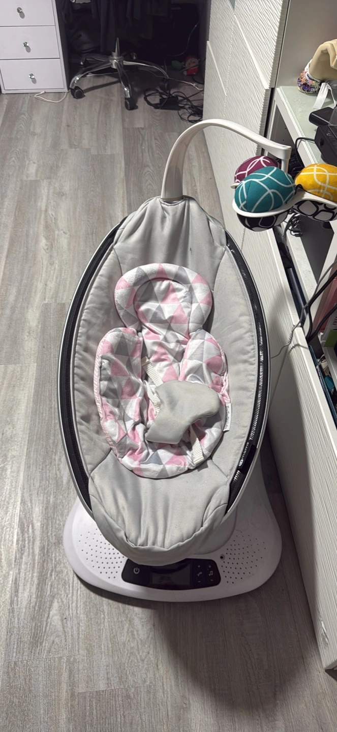 I'm selling a MamaRoo baby swing in great condition! It features multiple motions and speeds to soothe your little one. The swing also has built-in sounds and the option to connect your MP3 device. Perfect for keeping baby entertained and comfortable! Barely used