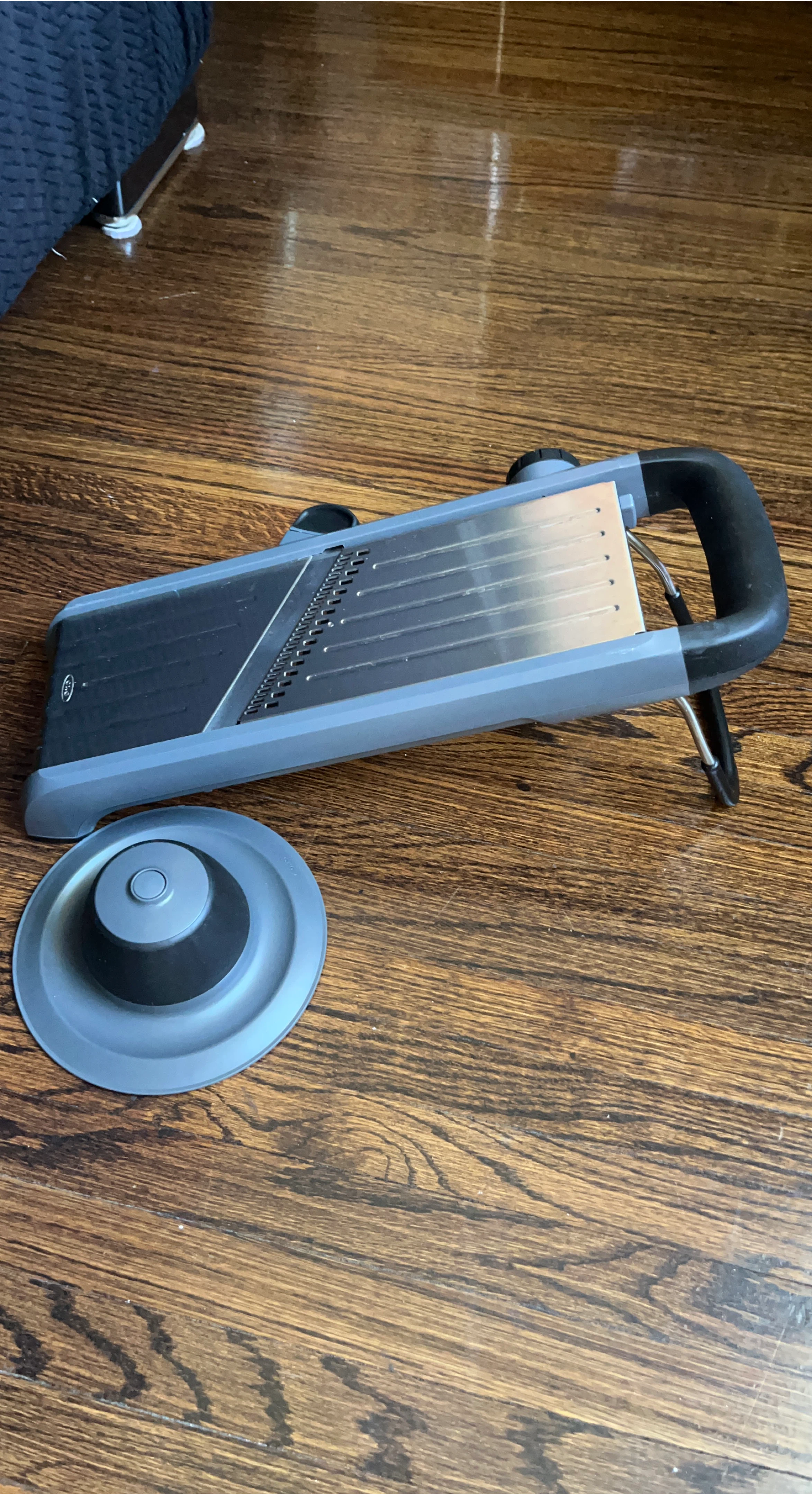 Selling a mandoline slicer in good condition! It's great for slicing vegetables and comes with a safety guard