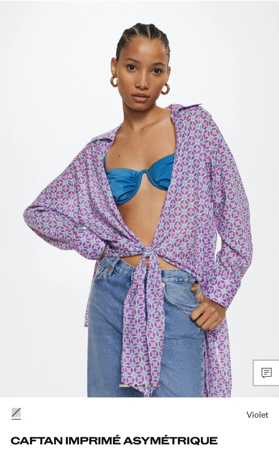 Selling a Mango printed asymmetric caftan in violet! It is a beautiful and stylish piece. The caftan features an asymmetric design and a unique print. Perfect for adding a touch of elegance to your wardrobe