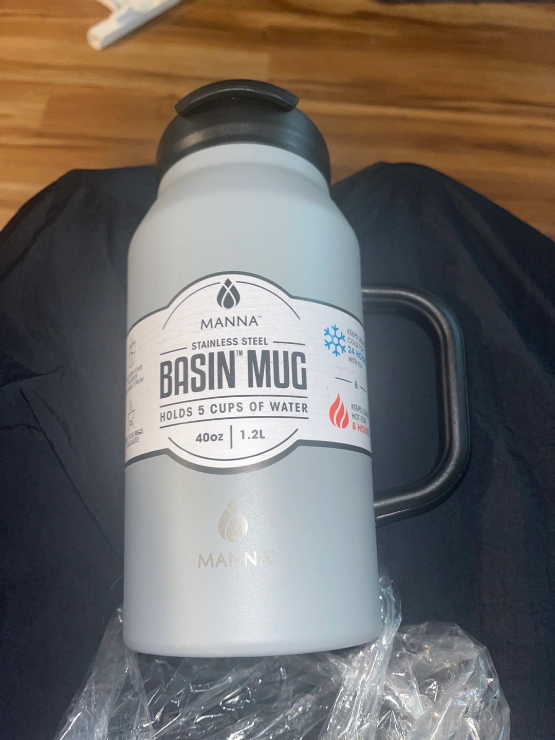 Selling a new Manna Basin Mug! It's stainless steel and holds 40oz or 1.2L of water. It's designed to keep your drinks cold for up to 24 hours or hot for 12 hours. Perfect for staying hydrated on the go!