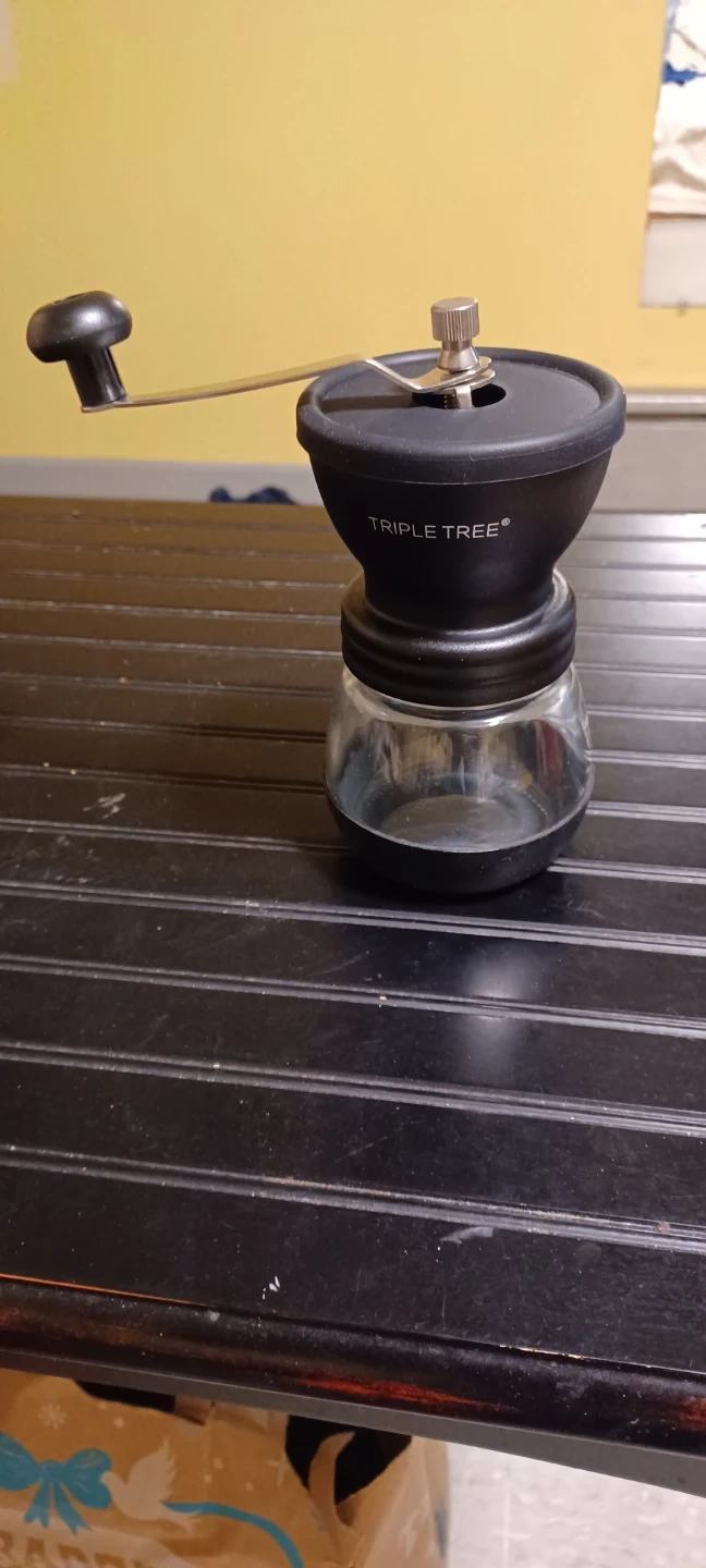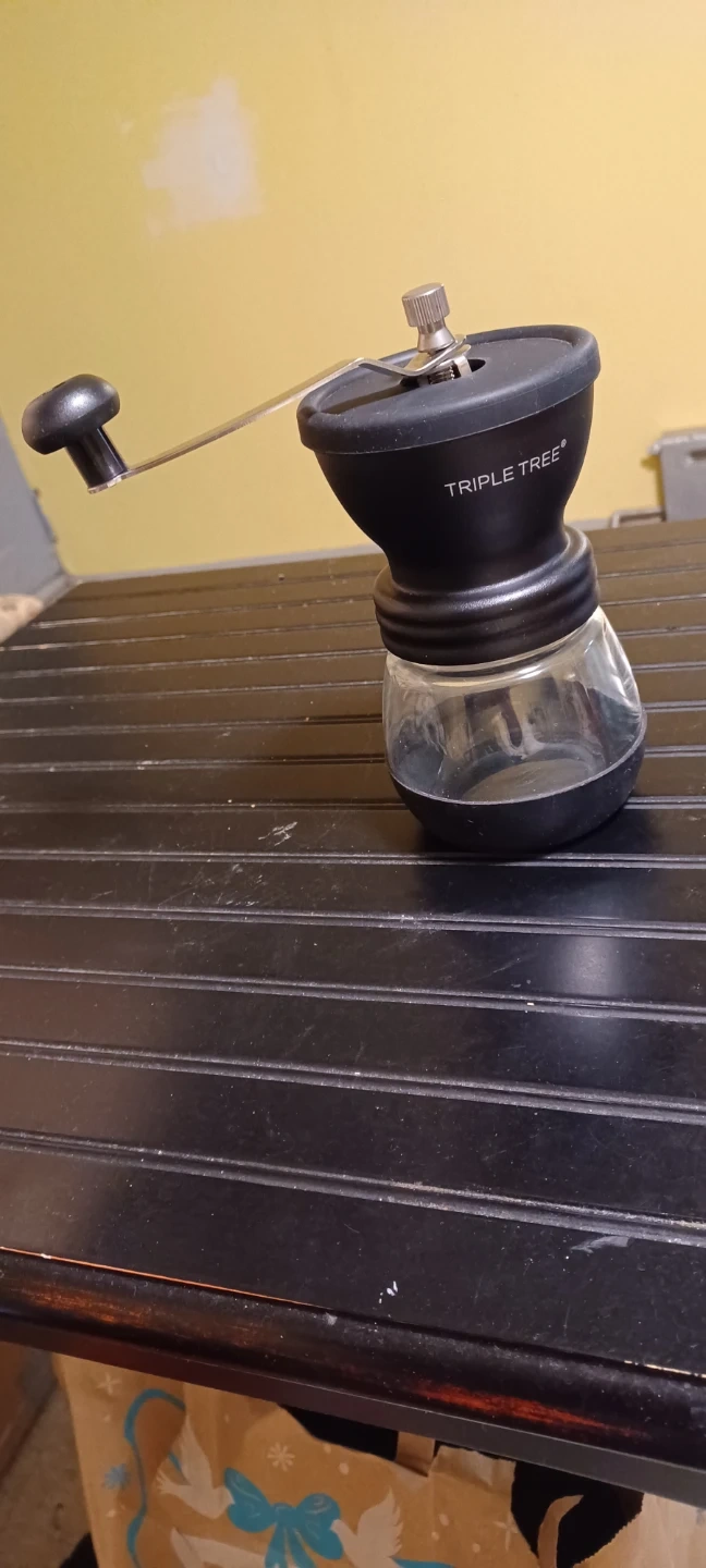 Selling a manual coffee grinder from Triple Tree! It's in great condition and ready to grind your favorite beans. The grinder features a durable build and a clear glass jar to collect your freshly ground coffee. Perfect for coffee lovers who enjoy a hands-on brewing experience