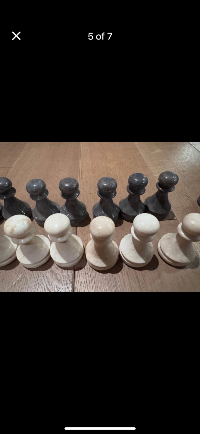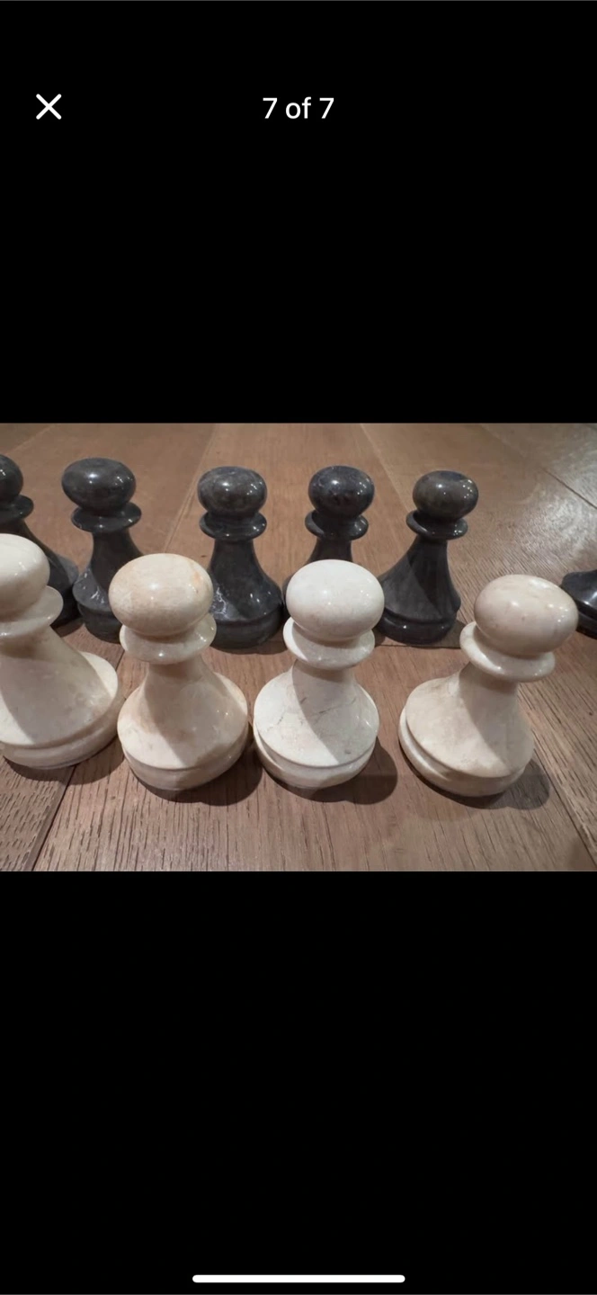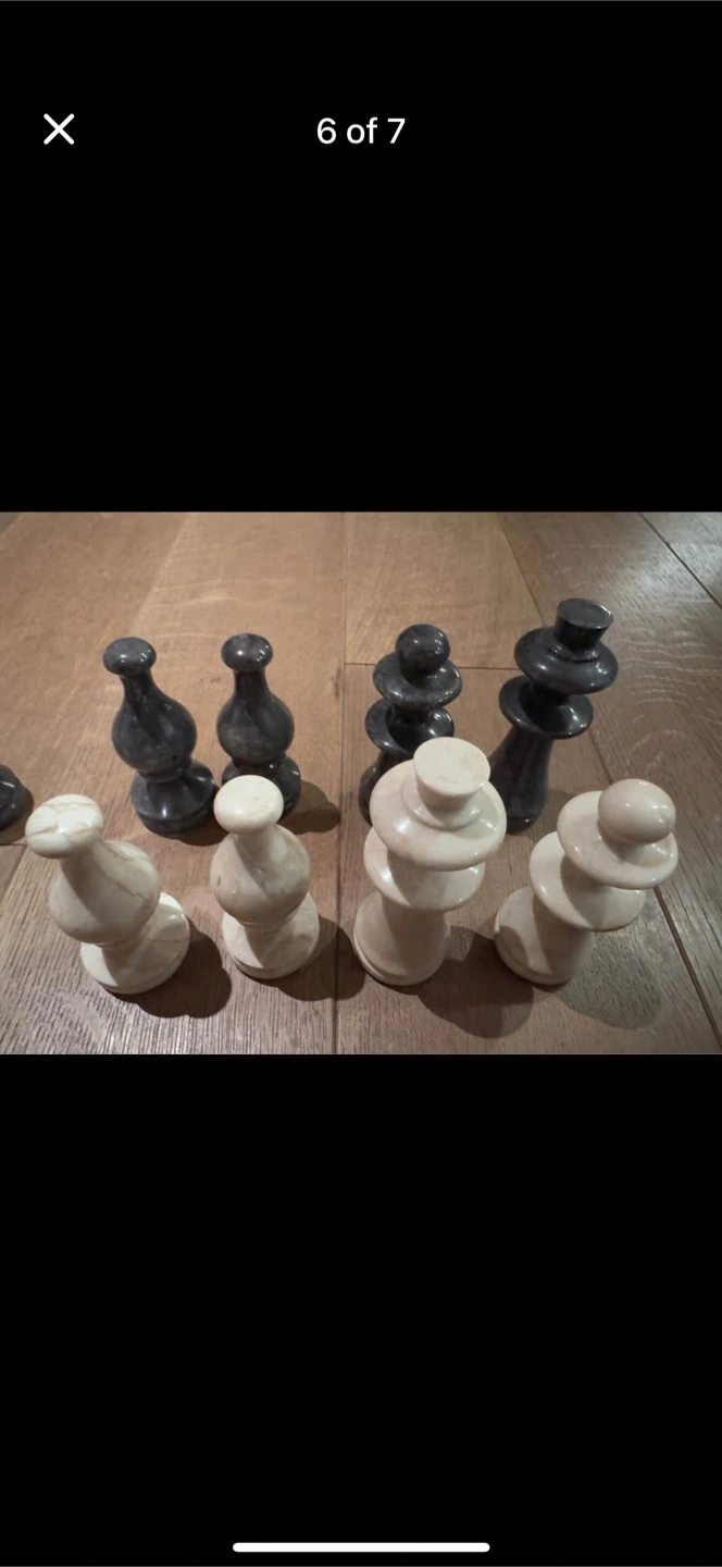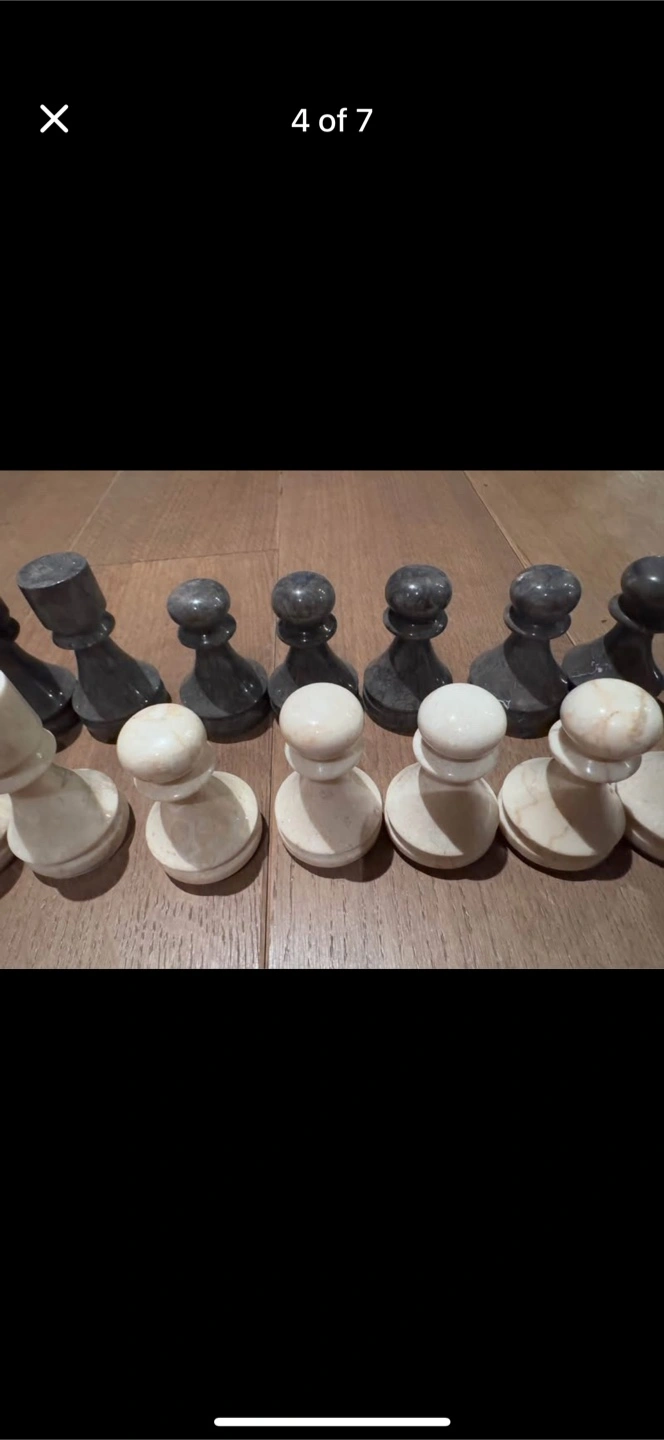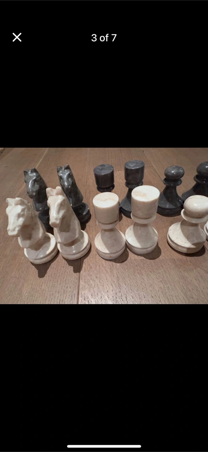 Complete chess set. Marble chess pieces and board. Black and white marble. Nice addition to any home.