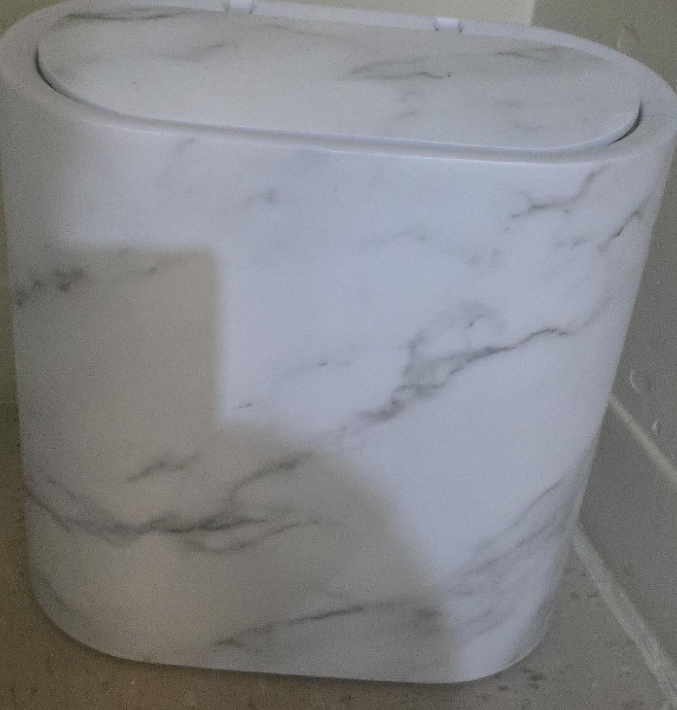 Selling a trash can with a stylish marble pattern! It's in great shape and would look perfect in a bathroom or small space
