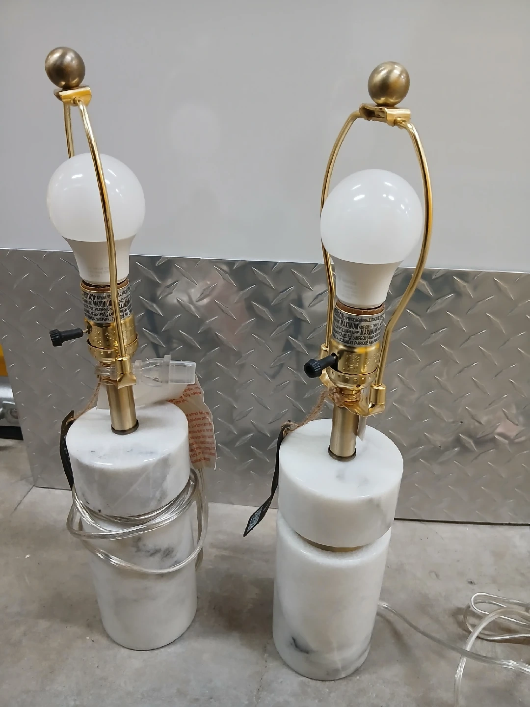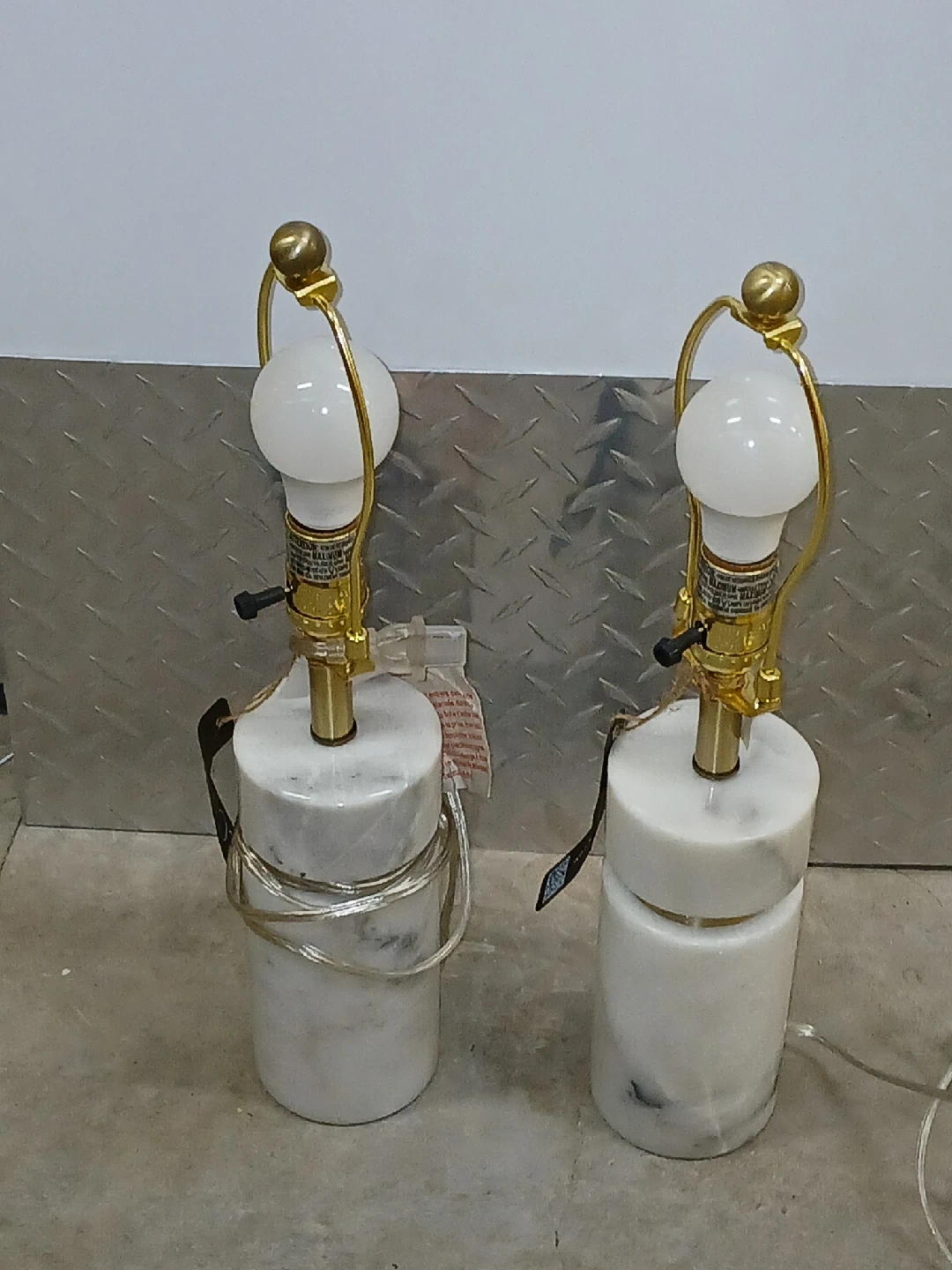 50Selling a set of two marble table lamps! They feature a sleek design with a marble base and gold accents. Perfect for adding a touch of elegance to any room