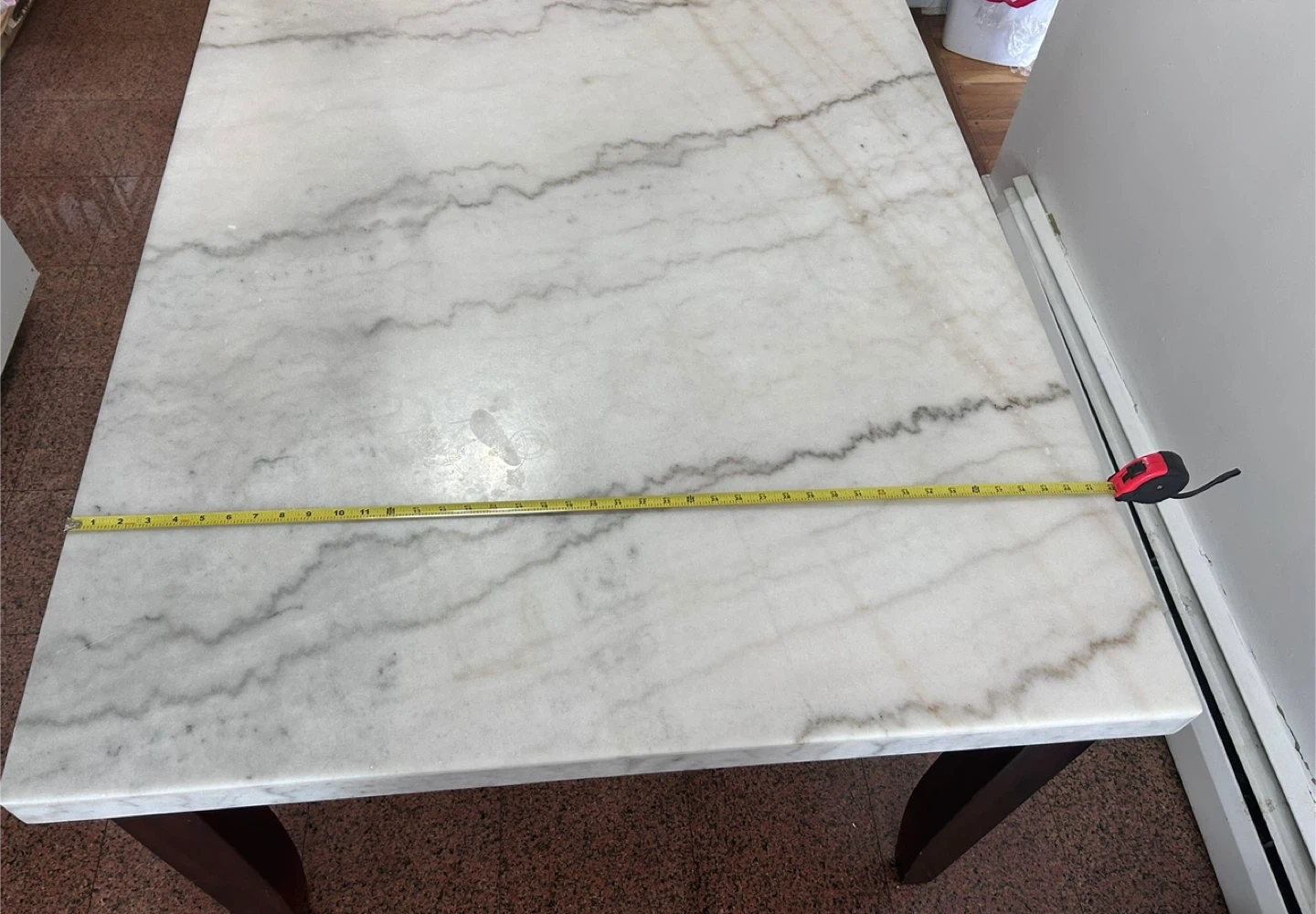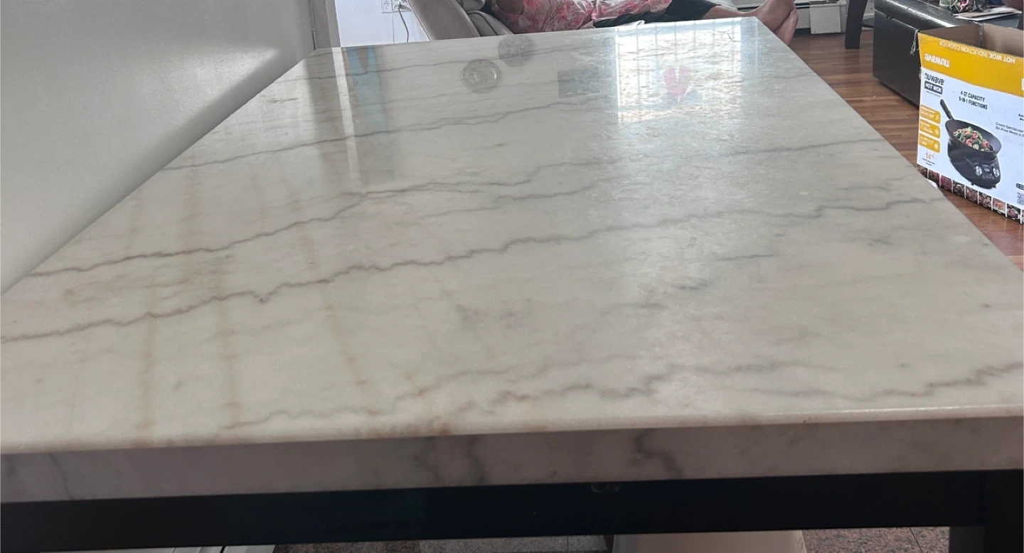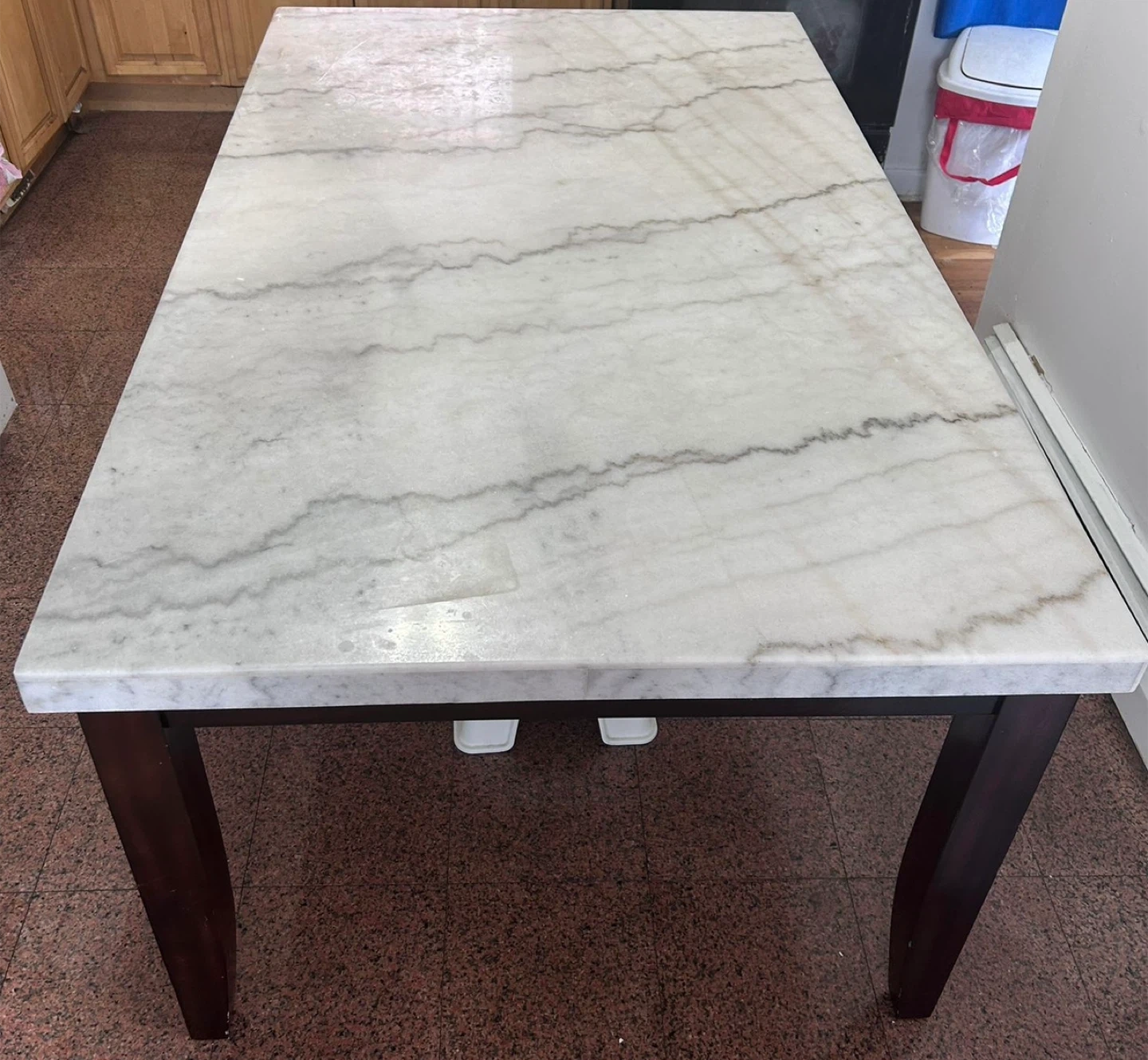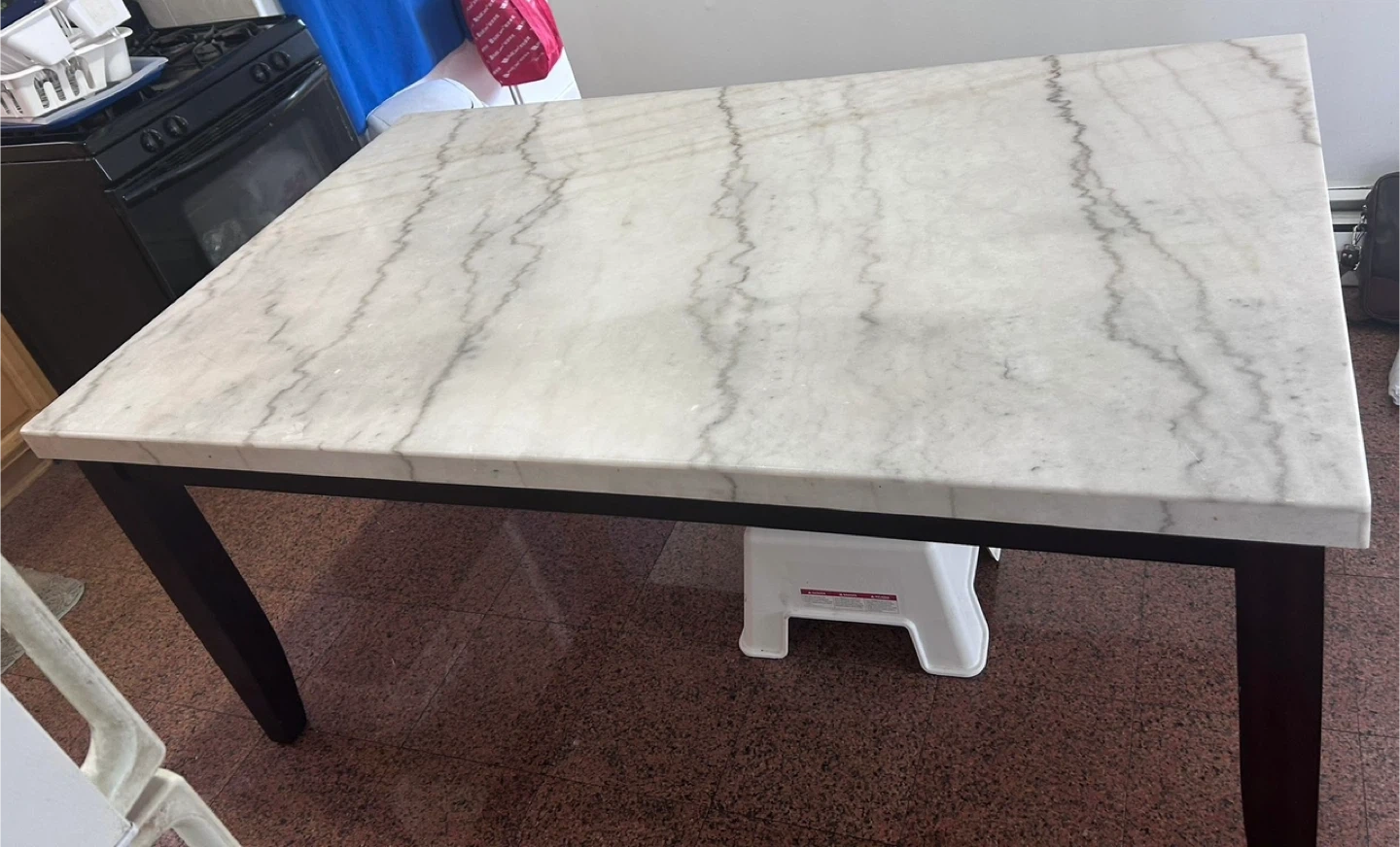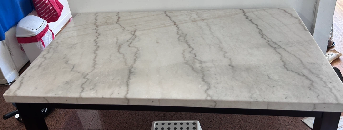 Selling a dining table or island with a beautiful marble top! The table top is white marble with gray veining. The table measures approximately 70 inches in length. Beautiful brand new marble perfect for dining table or kitchen island. Have to pick up from my residence.. Heavy need 2 people to carry.