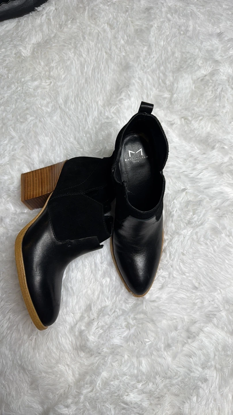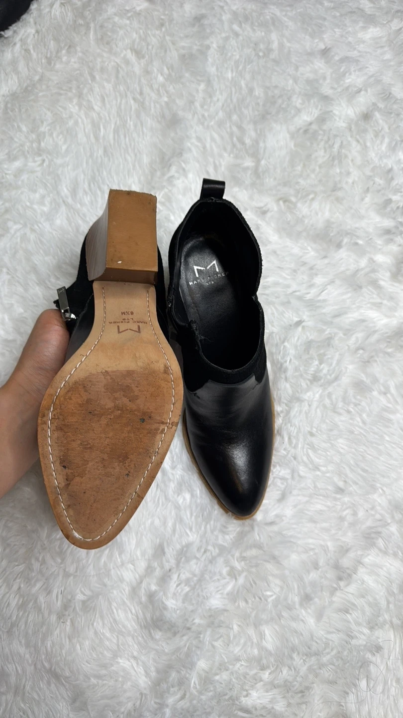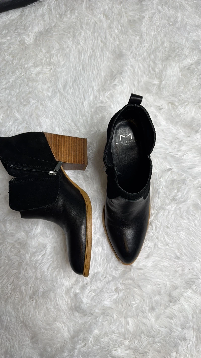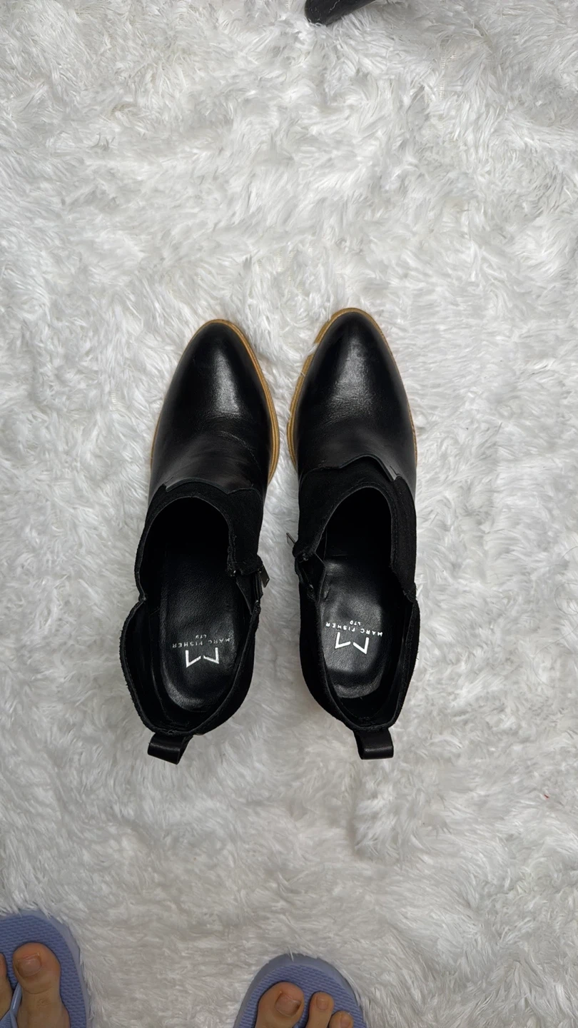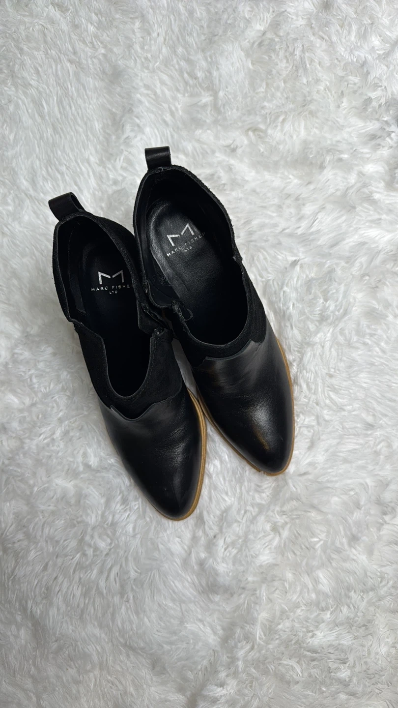 Selling a pair of Marc Fisher ankle boots in black leather. They're a size 6.5 and feature a stylish block heel. Perfect for adding a touch of chic to any outfit!
