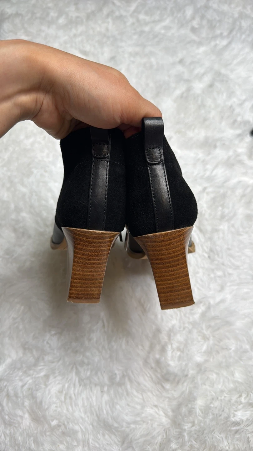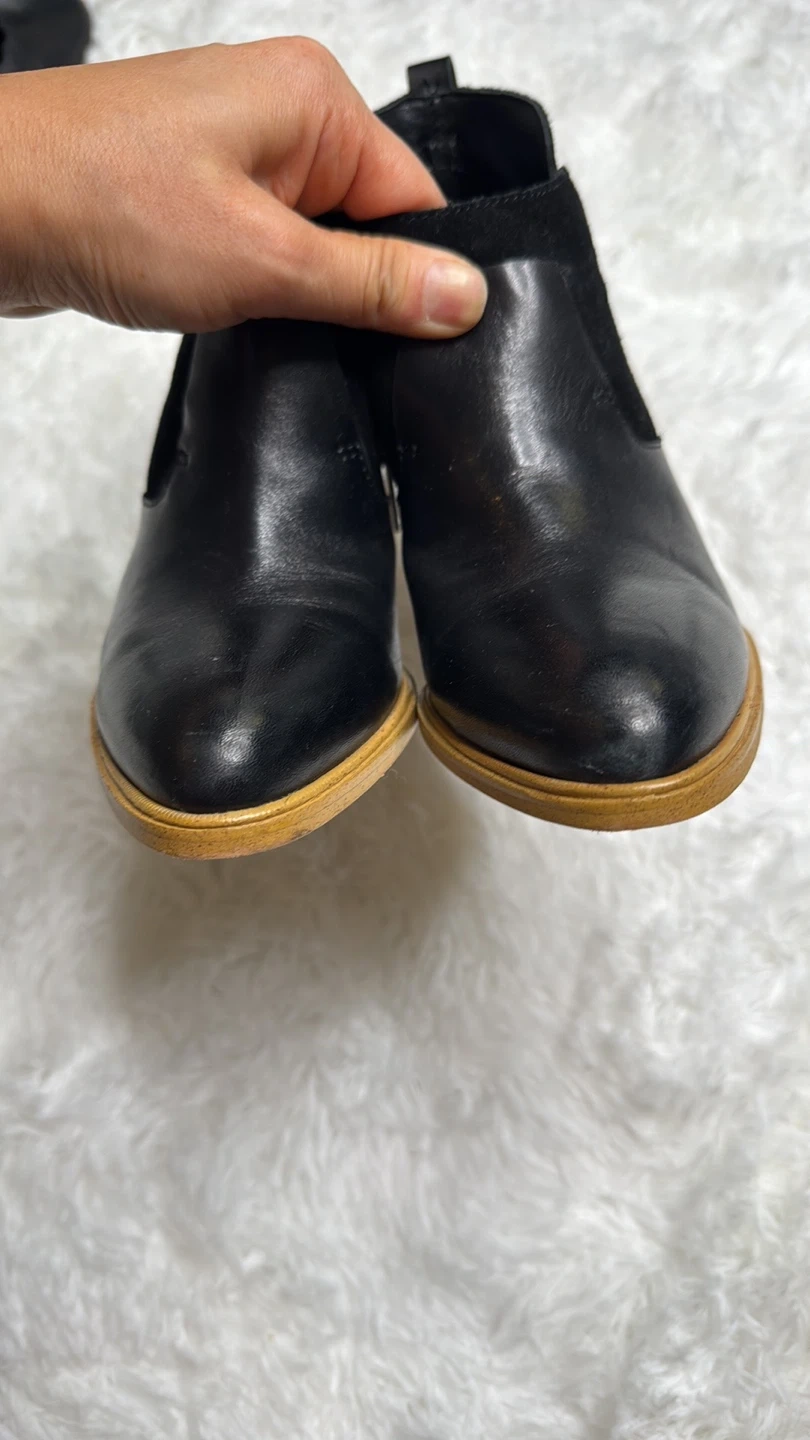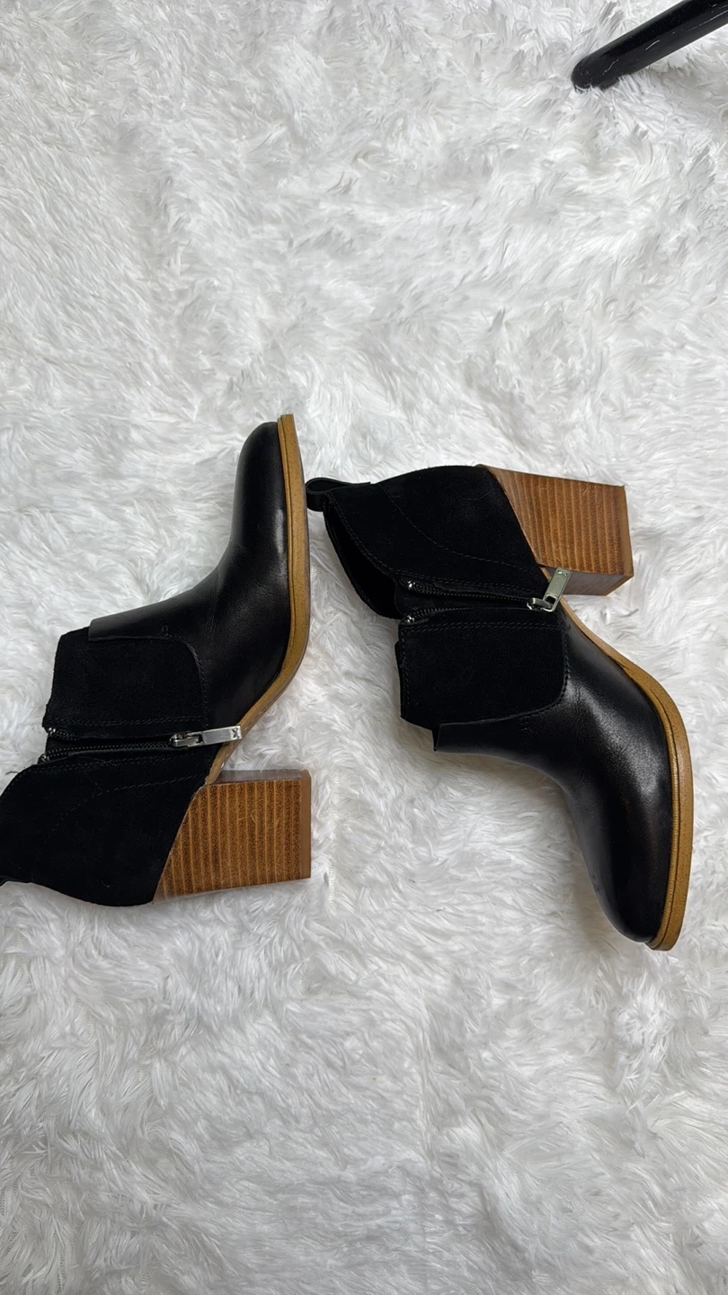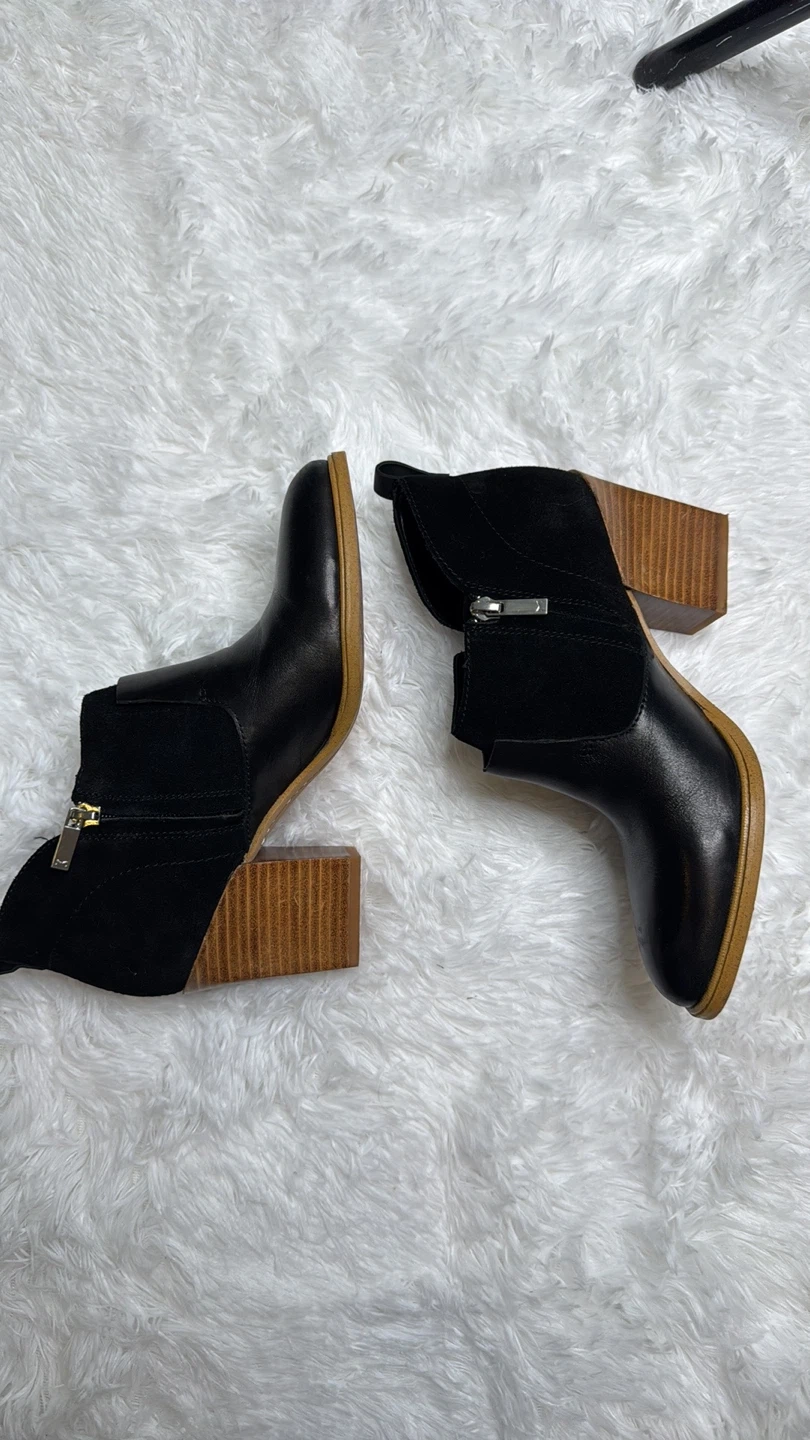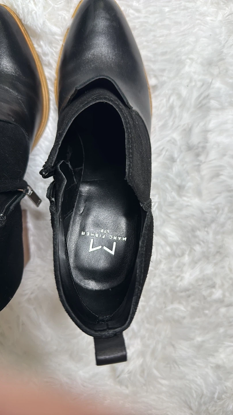 Selling a pair of Marc Fisher ankle boots in black leather. They're a size 6.5 and feature a stylish block heel. Perfect for adding a touch of chic to any outfit!