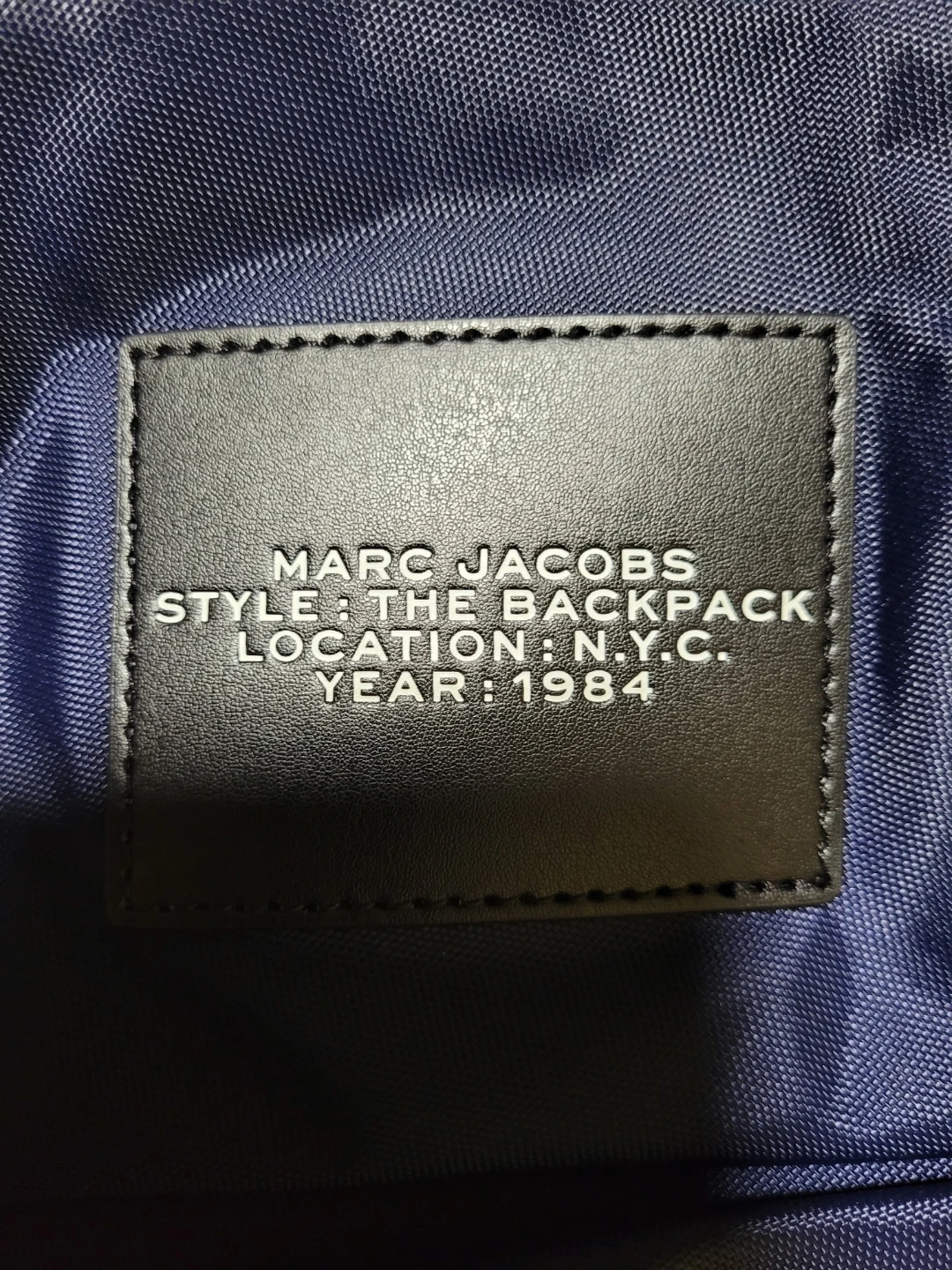 20This is a Marc Jacobs "The Backpack" in a stylish navy blue color! It's brand new with tags still attached. The suggested retail price on the tag is $250. It's a great lightweight and portable bag for everyday use