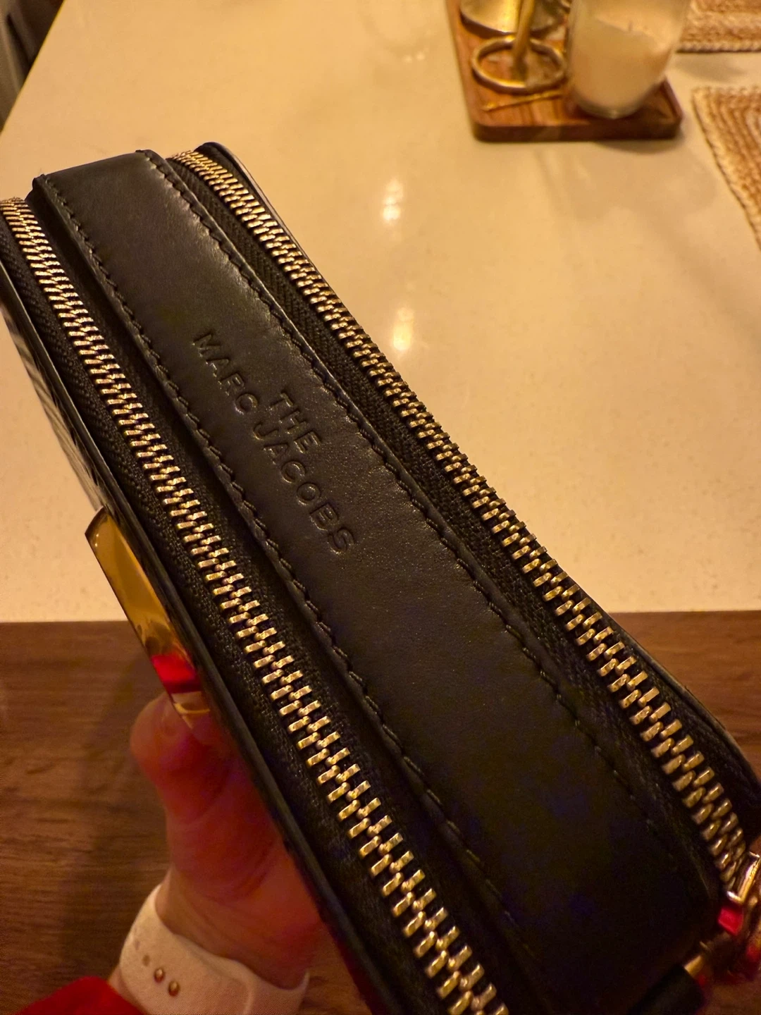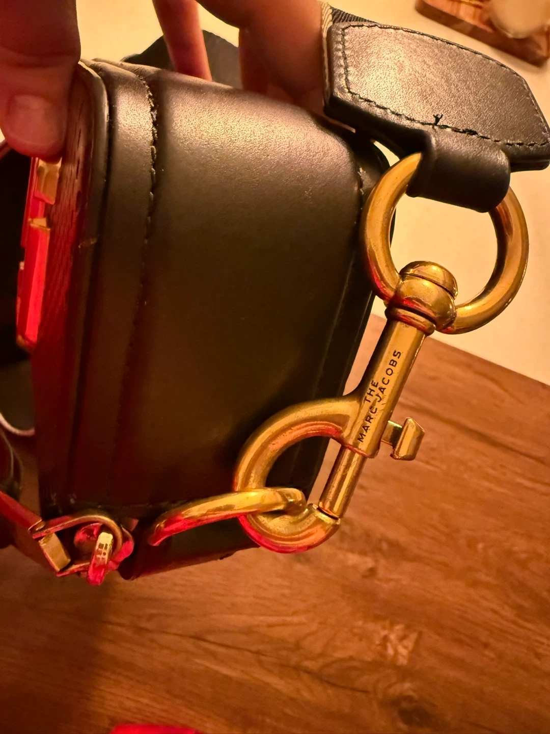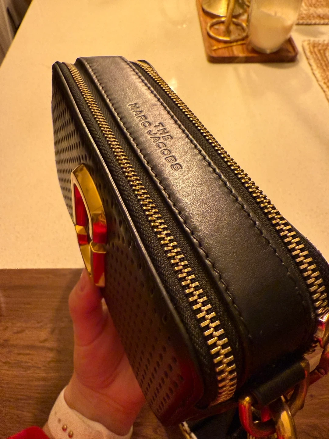 Selling a gently used Marc Jacobs The Leather Box Bag 20 in black. This stylish bag features a perforated design and gold-tone hardware. It's perfect for adding a touch of edgy sophistication to any outfit!