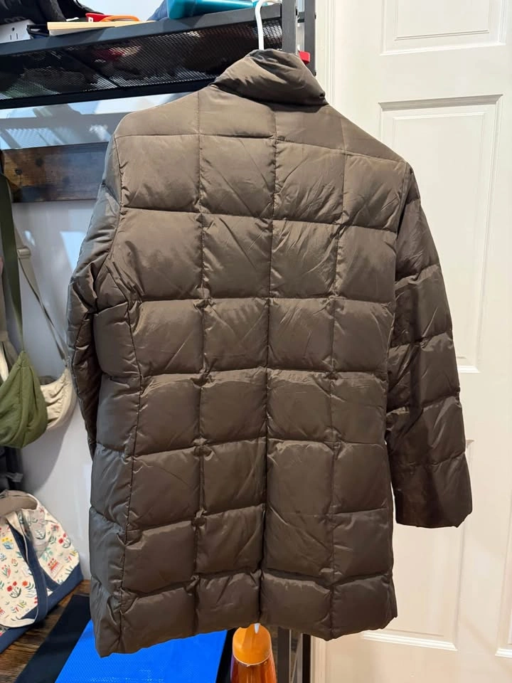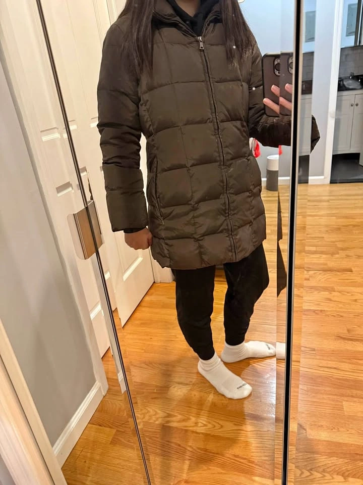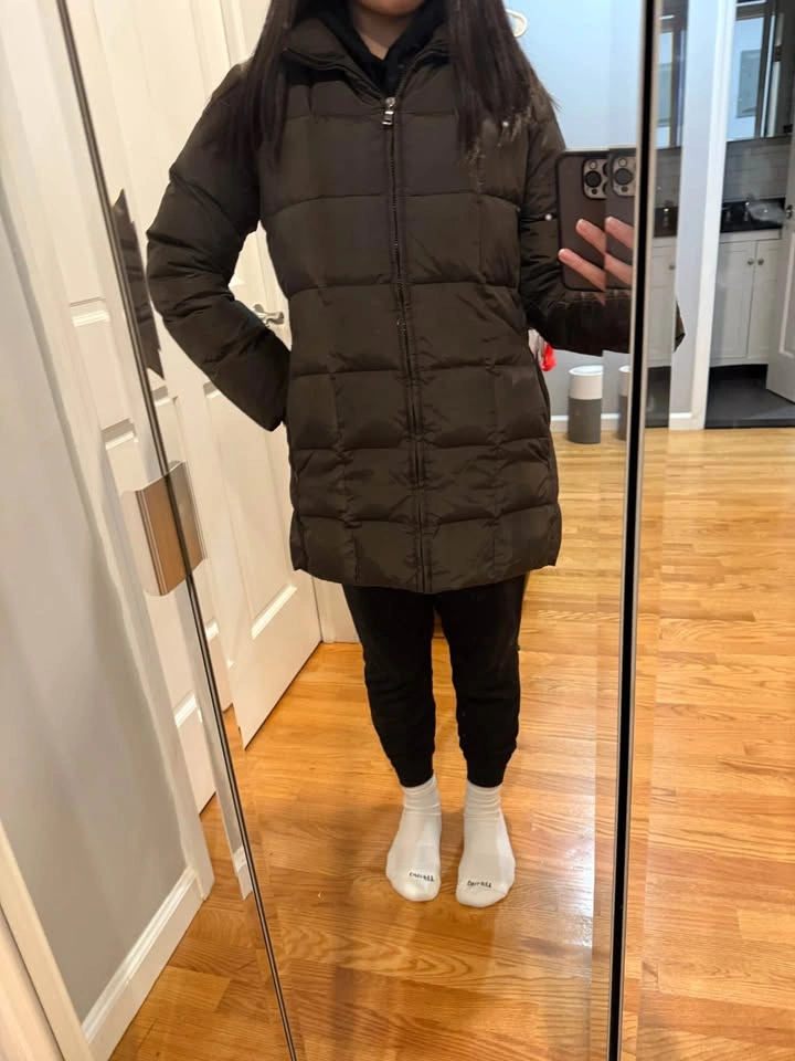 Warm jacket! Good condition puffer coat. Zip closure. Zippered pockets - 2 in front and 1 on inside. I'm 5'3" and it covers my butt.