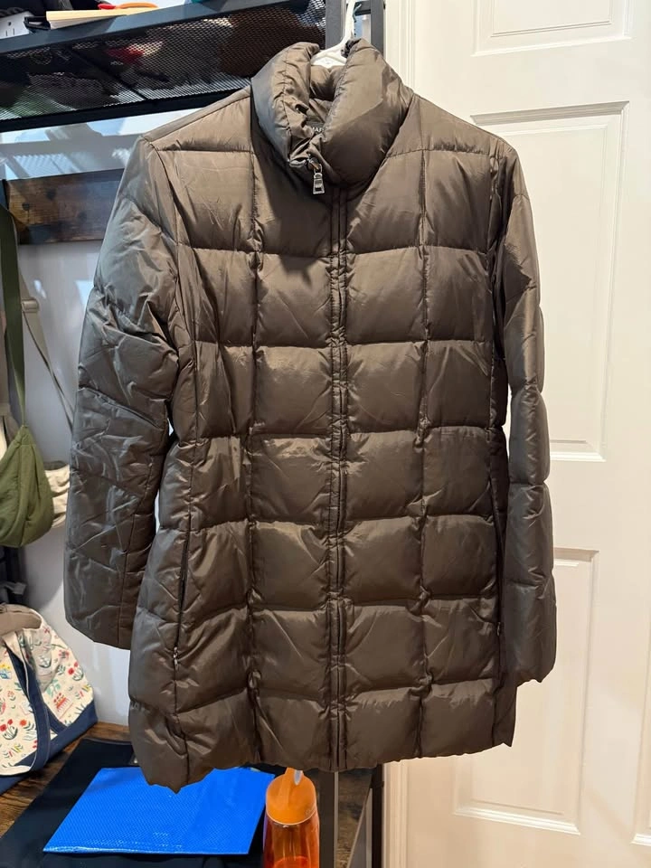 Warm jacket! Good condition puffer coat. Zip closure. Zippered pockets - 2 in front and 1 on inside. I'm 5'3" and it covers my butt.