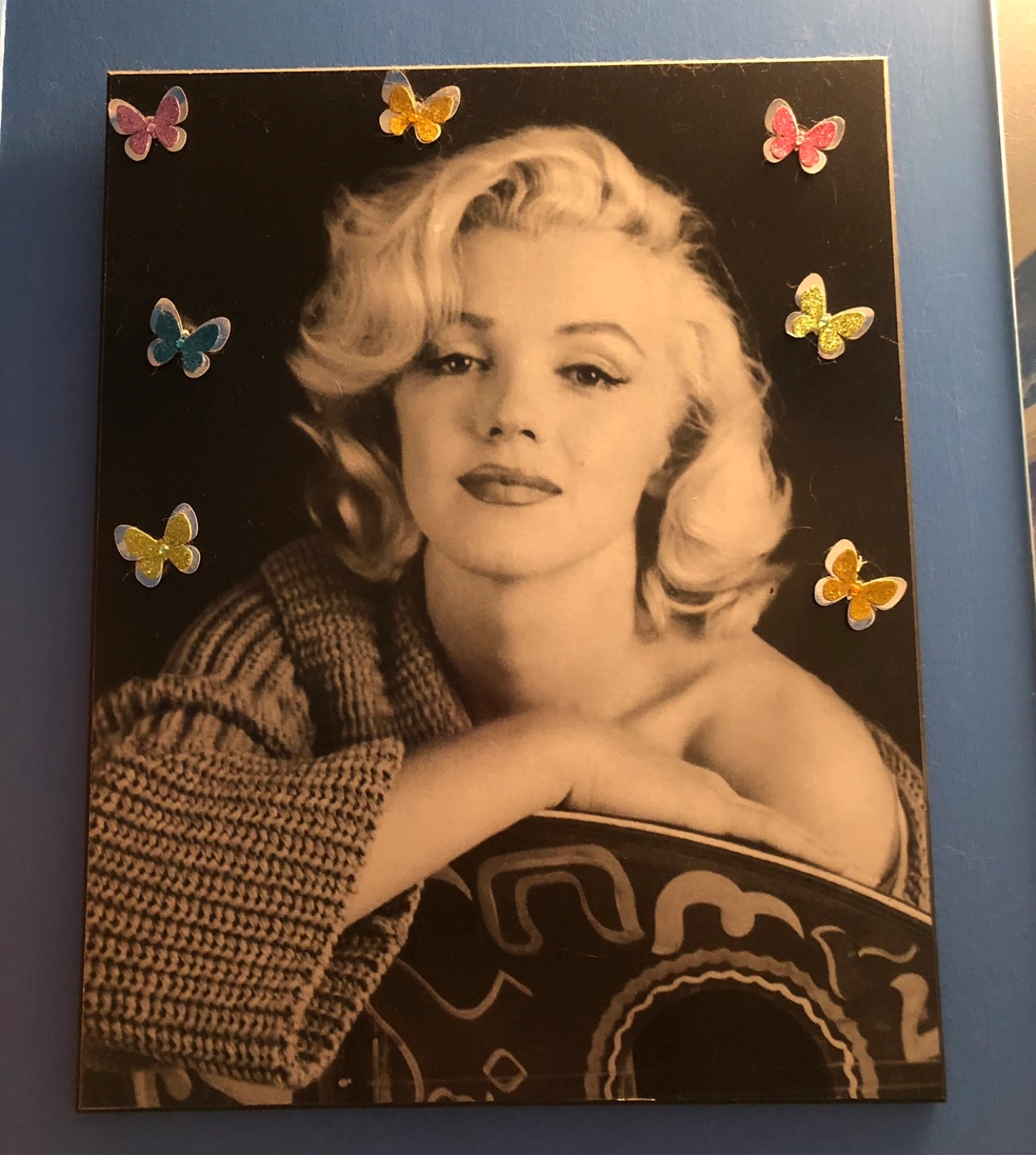 Beautiful Marilyn Monroe black/white photo on hard canvas (wood). Measures: 15” wide x 19” high. Porch pick up in Hodgkins. CASH only.