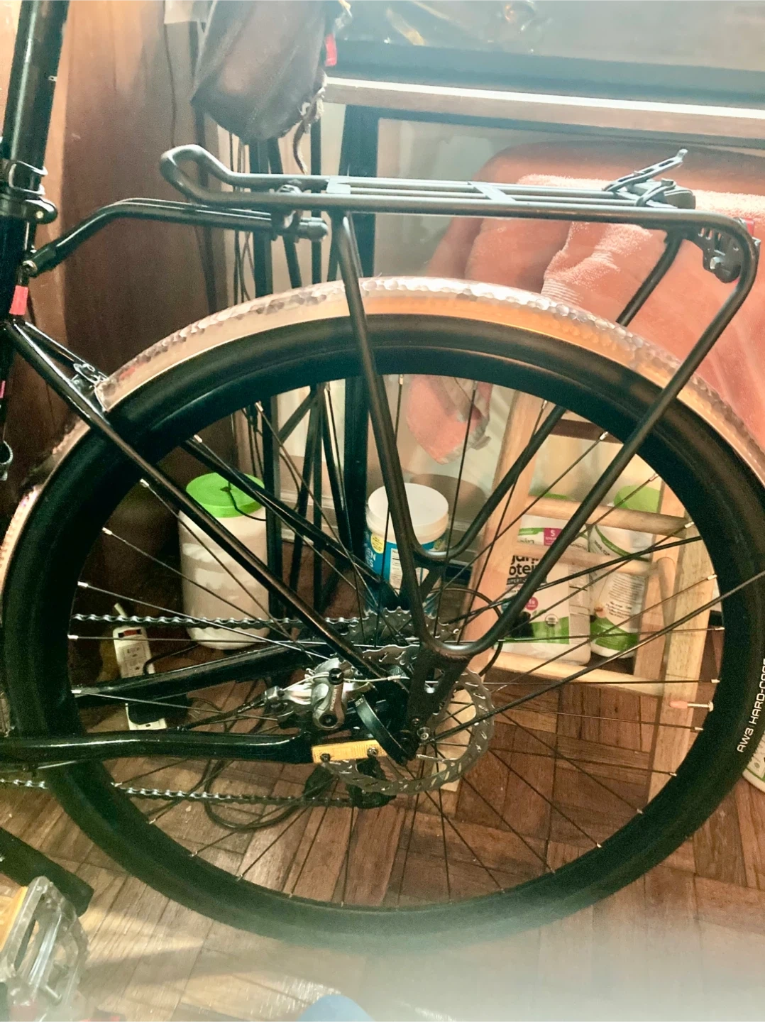 39Selling a Marin Nicasio road bike 2023-2024 Model 52cm in a sleek gloss black with pink accents and copper fenders with black matte rear rack, black water bottle holders, front auxiliary brake. The Nicasio is designed to take you beyond the road, whether it's on asphalt or off-road terrains. It features classic lines and CrMo frame tubes, offering a blend of modern and traditional design. Very clean with precise shifting and strong brakes. Covered by original warranty still in effect. Key features include: - Double Butted CrMo steel frame and fork - Shimano Claris 2x8 drivetrain - Marin aluminum double wall rims on forged aluminum hubs - Promax Render R Road mechanical disc brakes