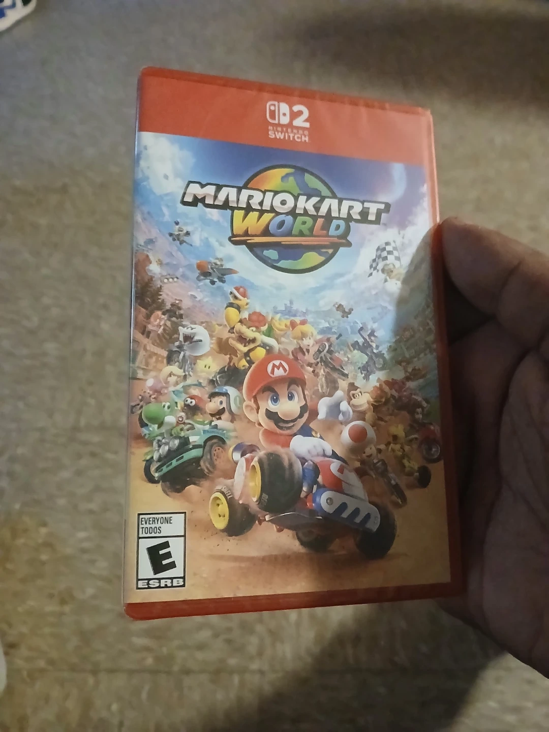 Selling a copy of Mario Kart World for the Nintendo Switch! It's rated E for Everyone by the ESRB. Great game for some racing fun!. Brand new, still in plastic