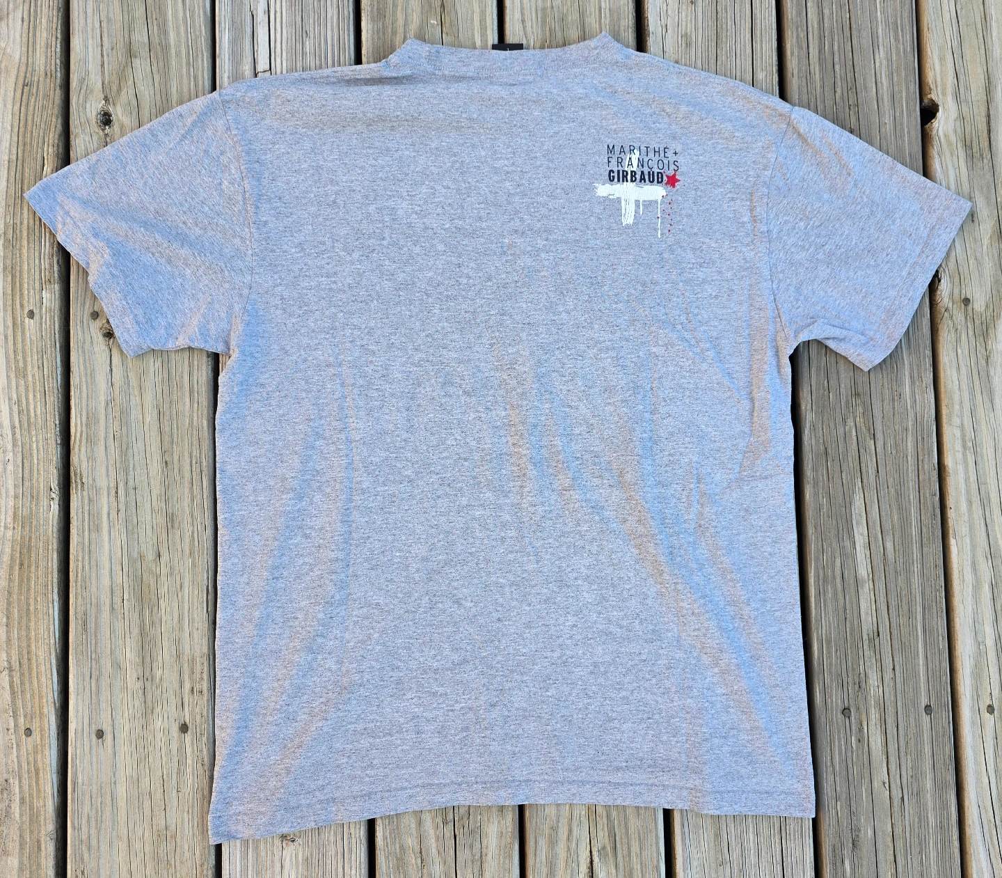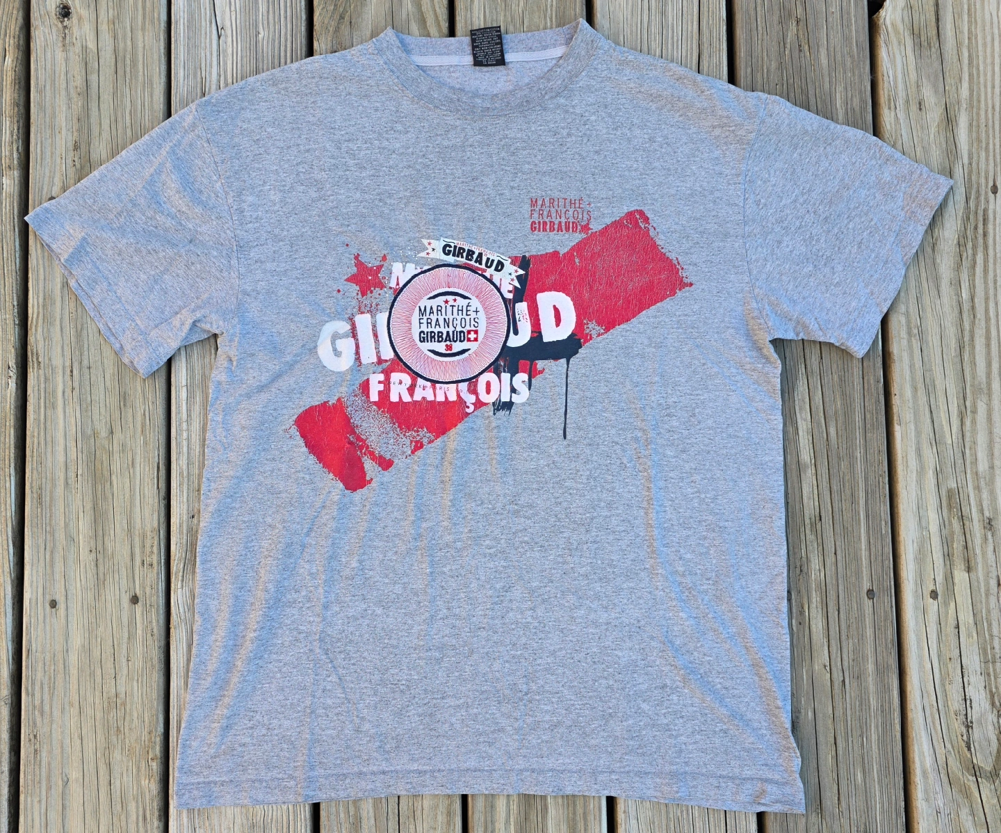 60Selling a Marithe Francois Girbaud gray t-shirt. It's a size L and made in Mexico. The material is 90% cotton and 10% polyester Pick up in Naperville near naper blvd and 87th street or near downtown Naperville off of Chicago and Charles