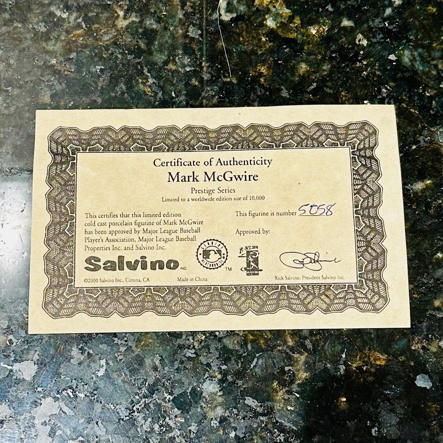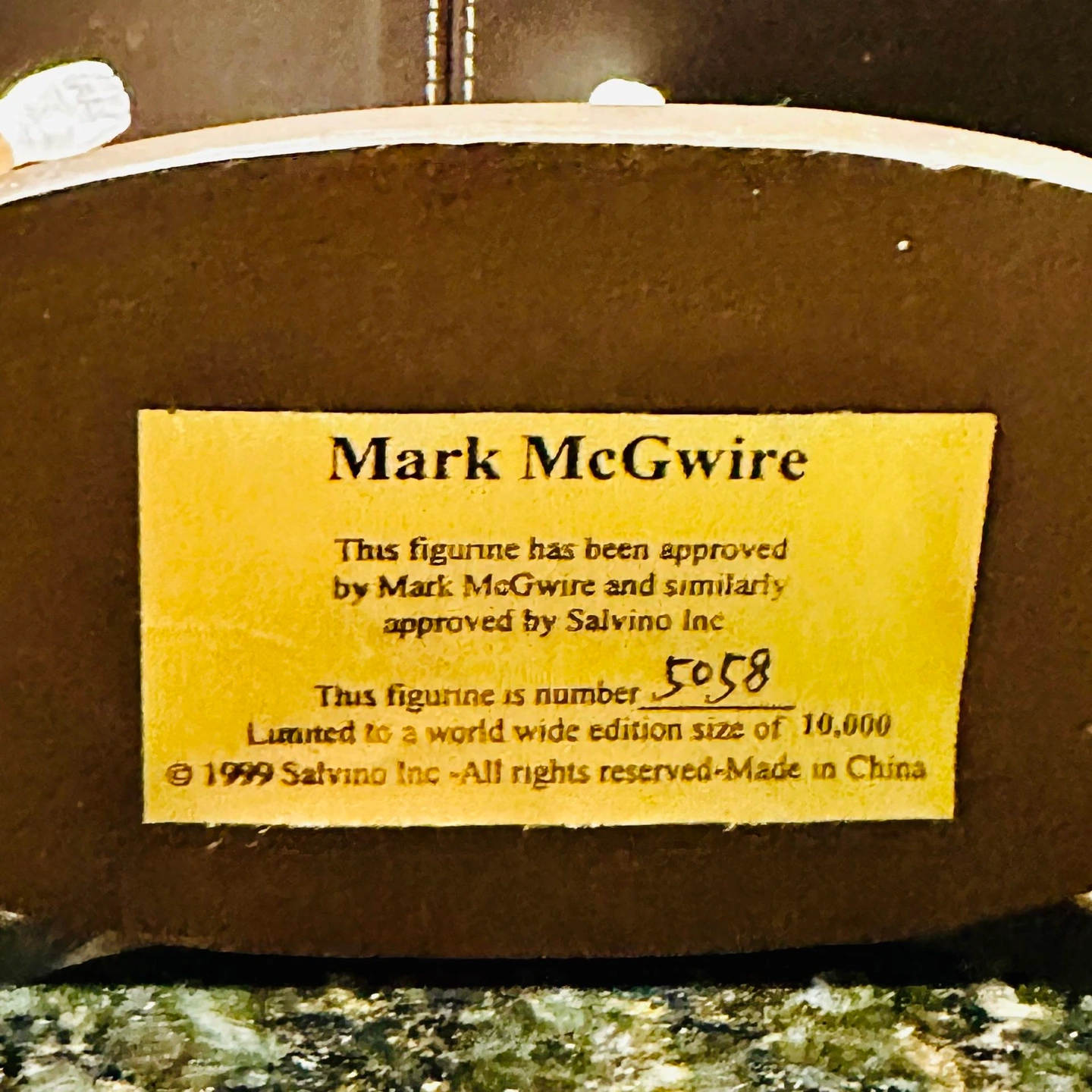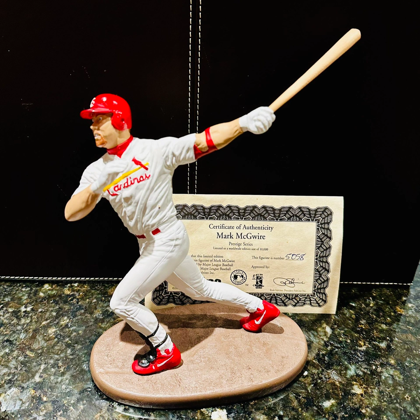 75Mark McGwire Limited Edition Salvino Prestige Series Figurine Statue - Limited Edition: 5,058/10,000 - Excellent condition (stored in original box) - Comes with baseball bat to place in his hands Product: Vintage memorabilia Team: St. Louis Cardinals Brand: Salvino Prestige Series