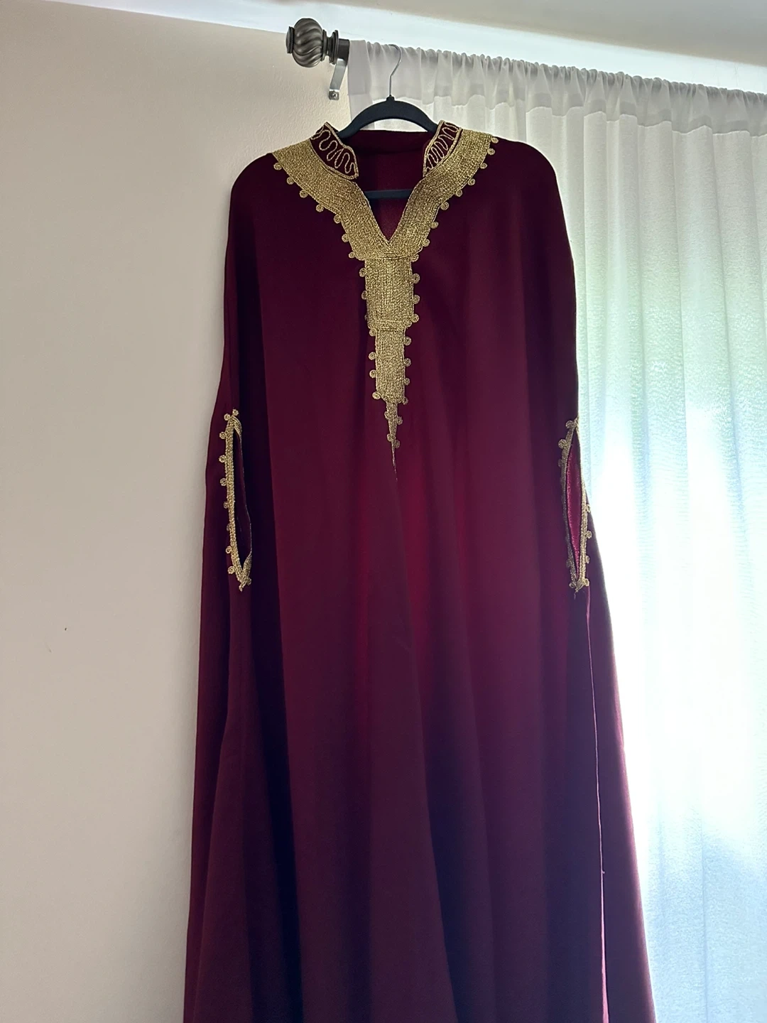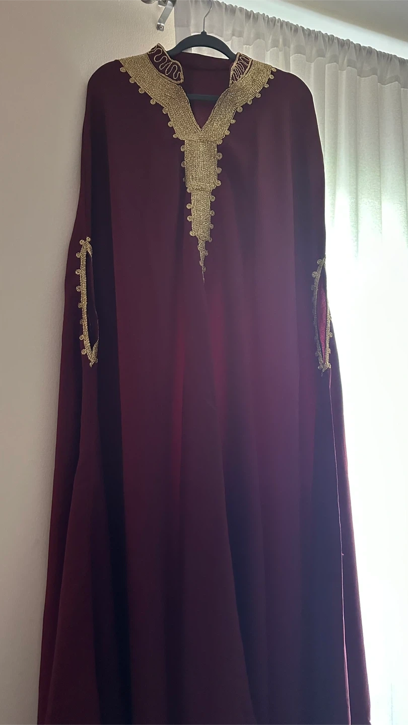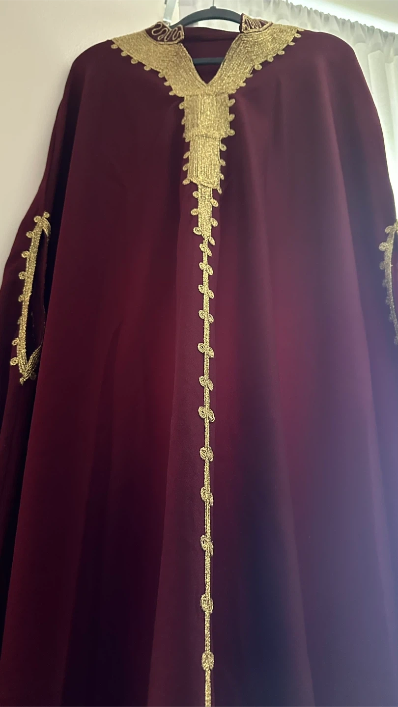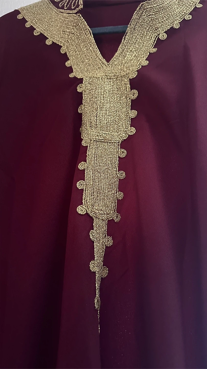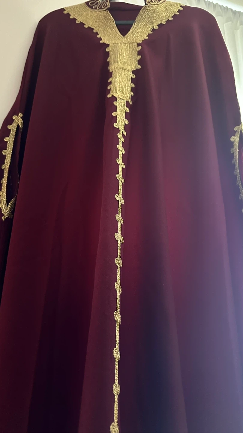 Selling a beautiful maroon kaftan with gold embroidery. It's in New condition and would be perfect for a special occasion or just to add a touch of elegance to your wardrobe
