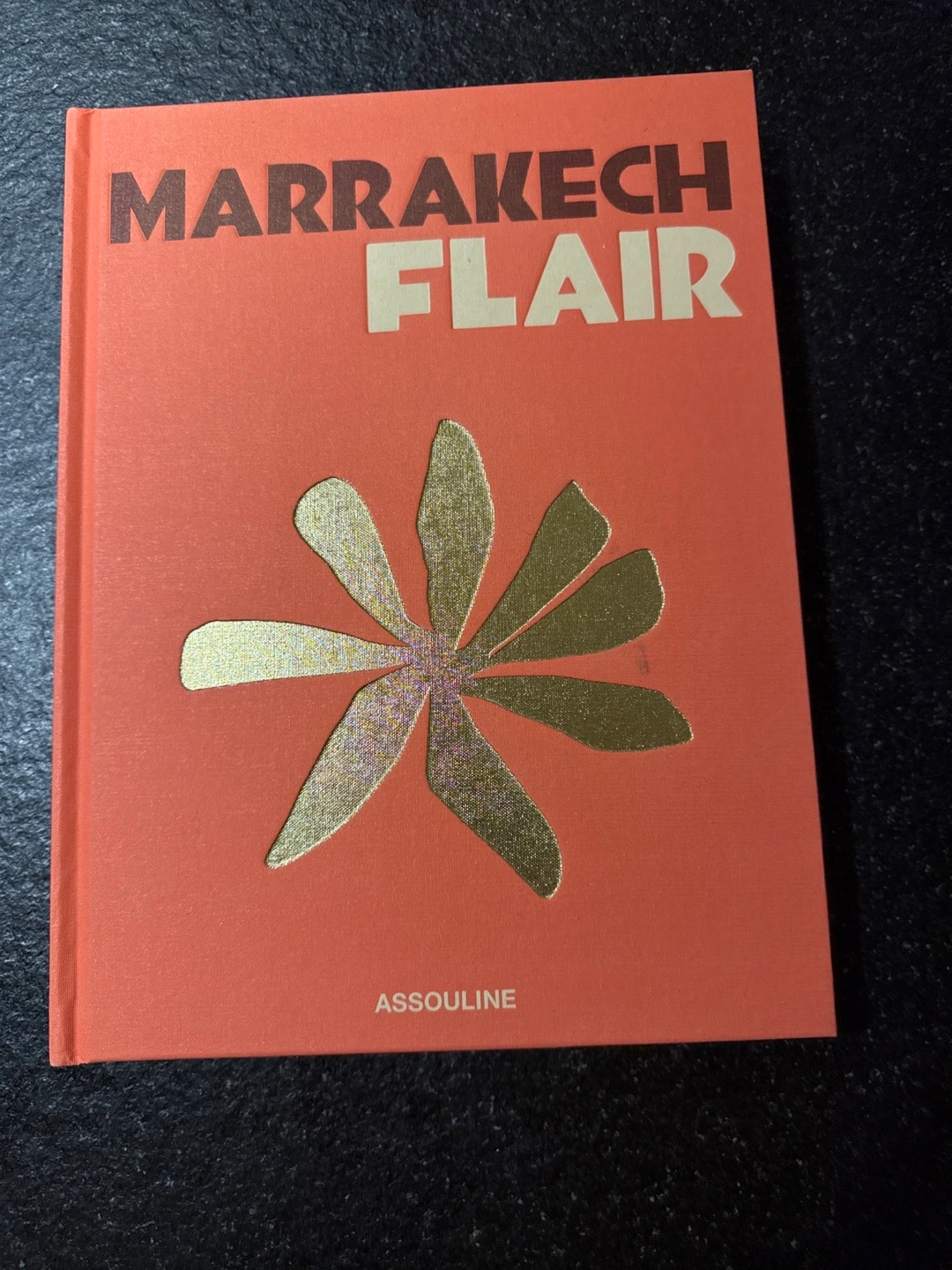 Hardcover book. Coral-colored cover. Gold foil accents. Beautiful coffee table book.